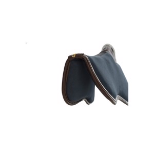 Grijs met witte piping en bruine lederen rand