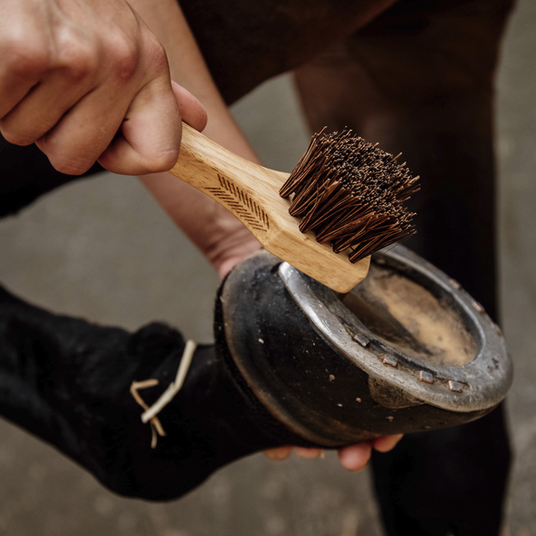 Aan de ene kant van de hoevenkrabber bevindt zich een sterke borstel, waardoor deze ideaal is voor het verwijderen van zand en vuil uit de hoef van het paard.