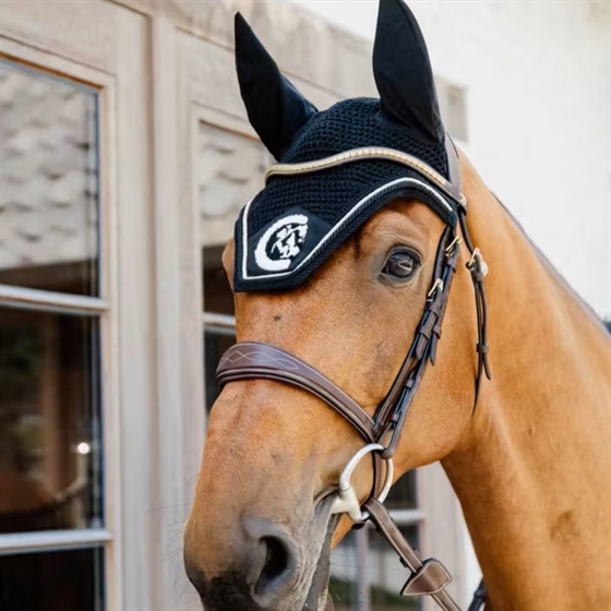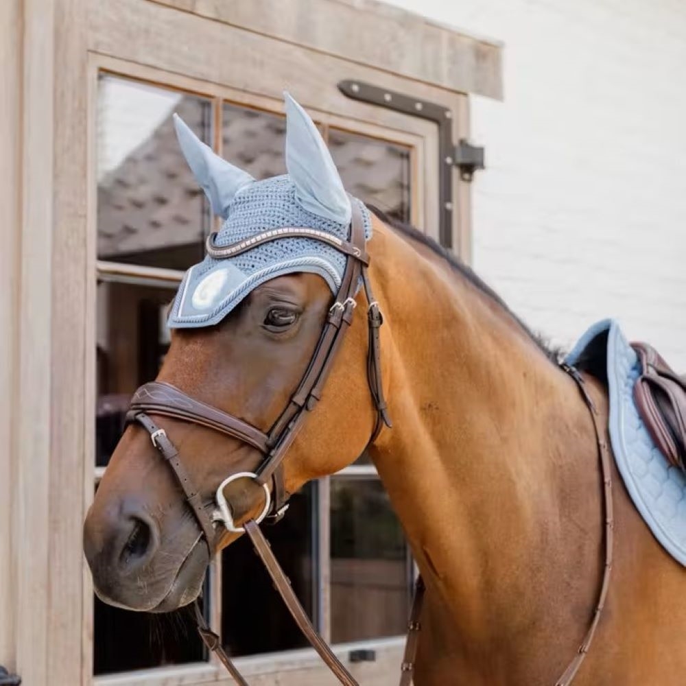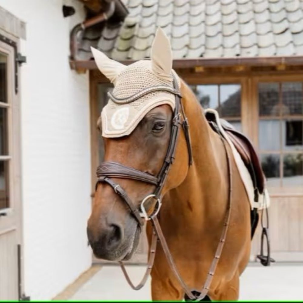 Fly Veil Wellington 3D heeft een zichtbaar Kentucky-logo aan de voorkant. Dit Kentucky Horsewear vliegenmasker beschermt de oren van het paard tegen vliegen tijdens het rijden. Dit model heeft een elegant koord om het contrast tussen de kleuren te vergroten.