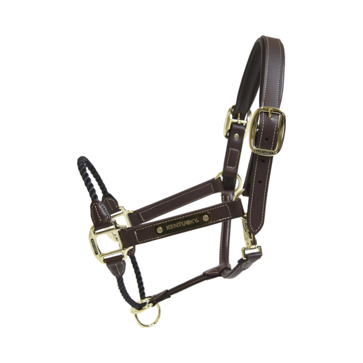 De lengte kan aan beide zijden worden aangepast, waardoor het correct zit en het halster heeft bovendien een mooie goudkleurige plaat op het wangstuk, waarin Kentucky is gegraveerd.