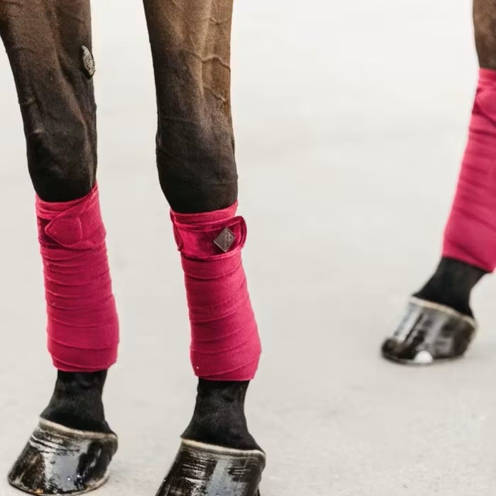 Mooie bandages van Kentucky. De bandages zijn gemaakt van 280 g/m2 polar fleece en hebben een sterke klittenbandsluiting om ervoor te zorgen dat ze op hun plaats blijven. De afmetingen van de bandages zijn 325 cm x 12 cm. De bandages worden verkocht in sets van 4, in een handige tas, zodat ze gemakkelijk mee te nemen zijn. Ze kunnen in de wasmachine gewassen worden op 30° en mogen niet in de droger. Verkrijgbaar in de kleuren: Dark Green - Emerald - Purple - Black - Navy - Red - Fuchsia