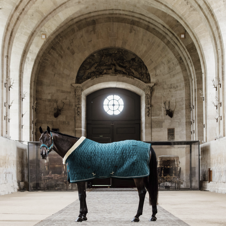 Het deken heeft een heerlijk zachte velvet buitenkant en een heerlijk zacht synthetisch konijnenvacht aan de binnenkant, voor optimaal comfort voor het paard. De kraag van het deken is een dikke laag van Kentucky's speciaal ontwikkelde imitatie lamsvacht, die drukverdelend werkt, druk vermindert en wrijving tegengaat, waardoor slijtage aan de vacht wordt verminderd.