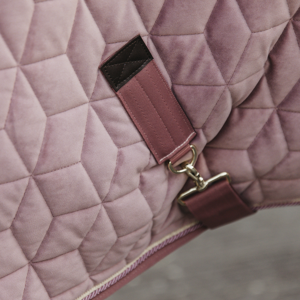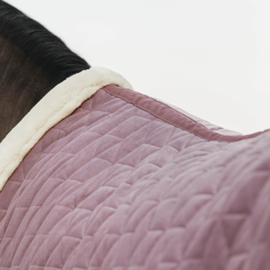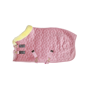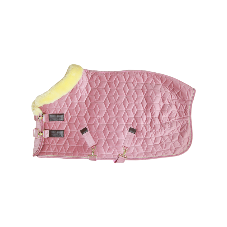Heerlijk showdeken met zachte velvet-buitenzijde en synthetische konijnenvacht aan de binnenkant, die optimaal comfort voor het paard biedt. De kraag bestaat uit dik imitatie lamswol, wat de druk verdeelt, wrijving vermindert en de vacht beschermt tegen slijtage.