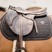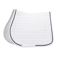 Elegant zadelonderleg met unieke stervormige quilting en decoratieve glitter- en touwdetails, die stijl en functionaliteit combineren. Het onderleg beschermt het paard tegen wrijving van het zadel en zorgt voor optimaal comfort tijdens het rijden. De eenvoudige ontwerpoplossing met één nylonriem voor de singel maakt het gemakkelijk om aan en uit te trekken.