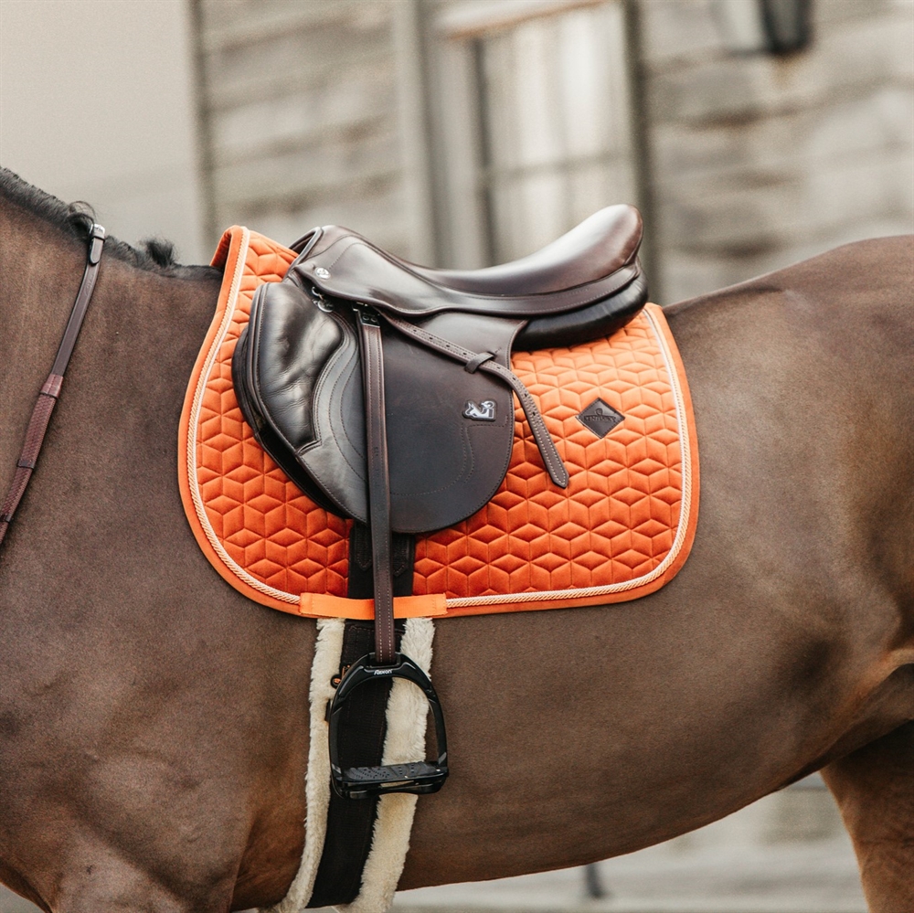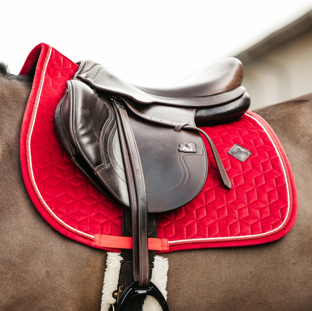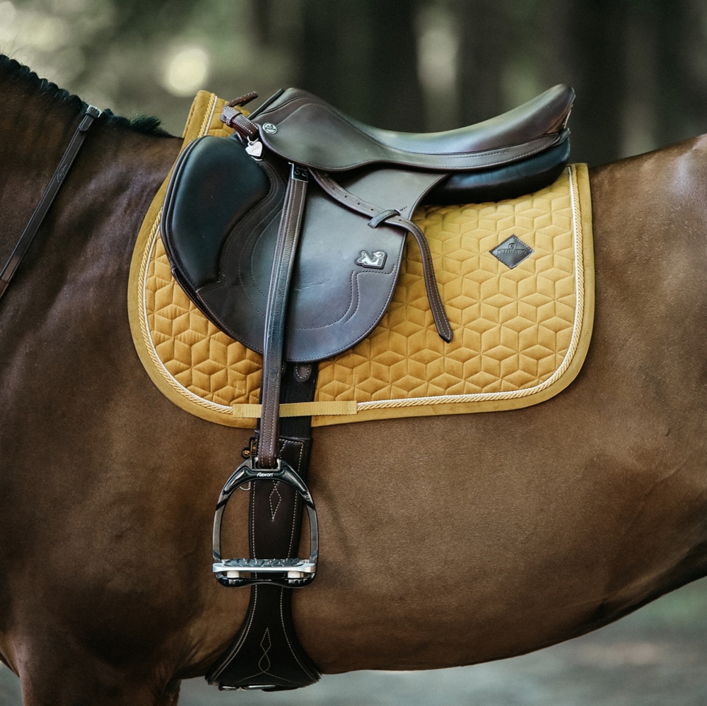 Kentucky Velvet Springonderlegger combineert exclusief design met hoge functionaliteit. De luxueuze velours buitenkant en de elegante dubbel gedraaide bies geven een klassiek en stijlvol uiterlijk. De onderlegger is ontworpen voor spring- en veelzijdigheidszadels, en het model is ook verkrijgbaar voor dressuur- en ponyzadels.