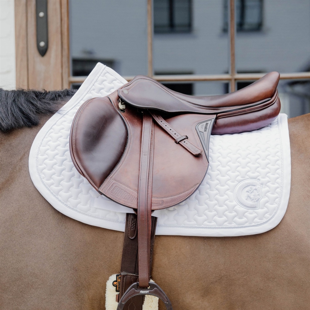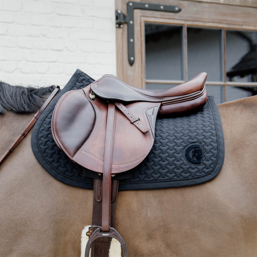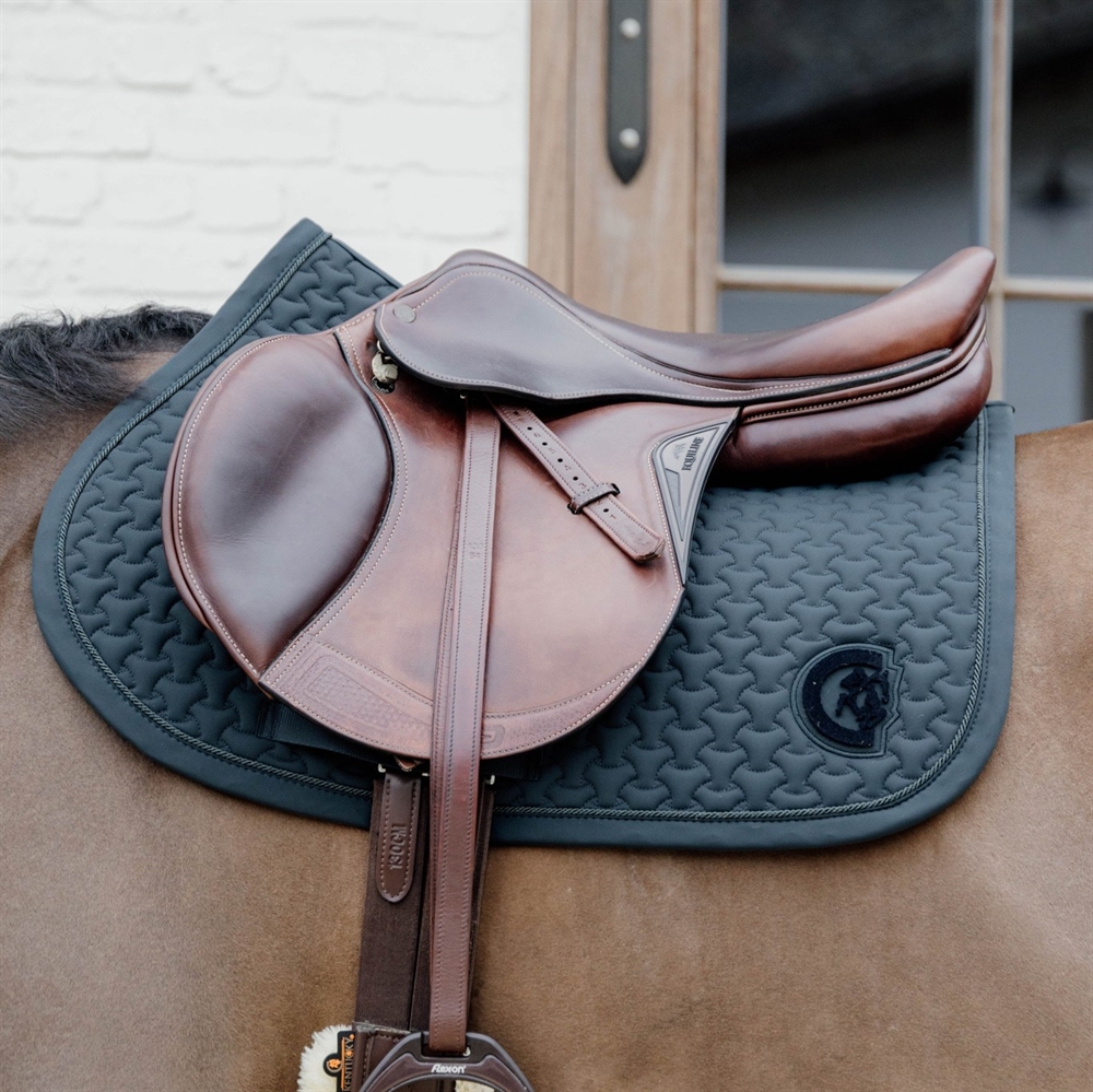 De binnenkant van het zadelonderlegger is gemaakt van een katoen en polyester mix die gemakkelijk zweet absorbeert en zeer ademend is.