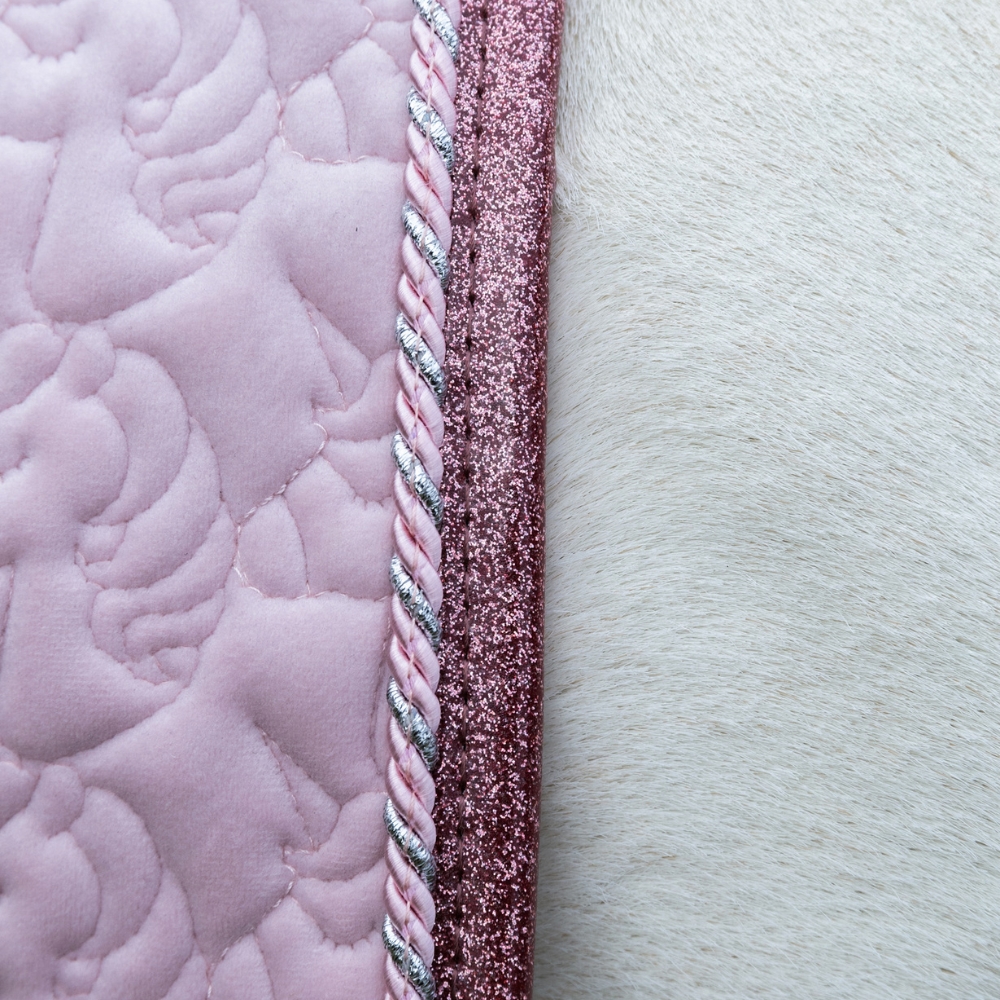 Glitterende roze rand – Een glanzend detail dat de elegantie van de onderlegger benadrukt.