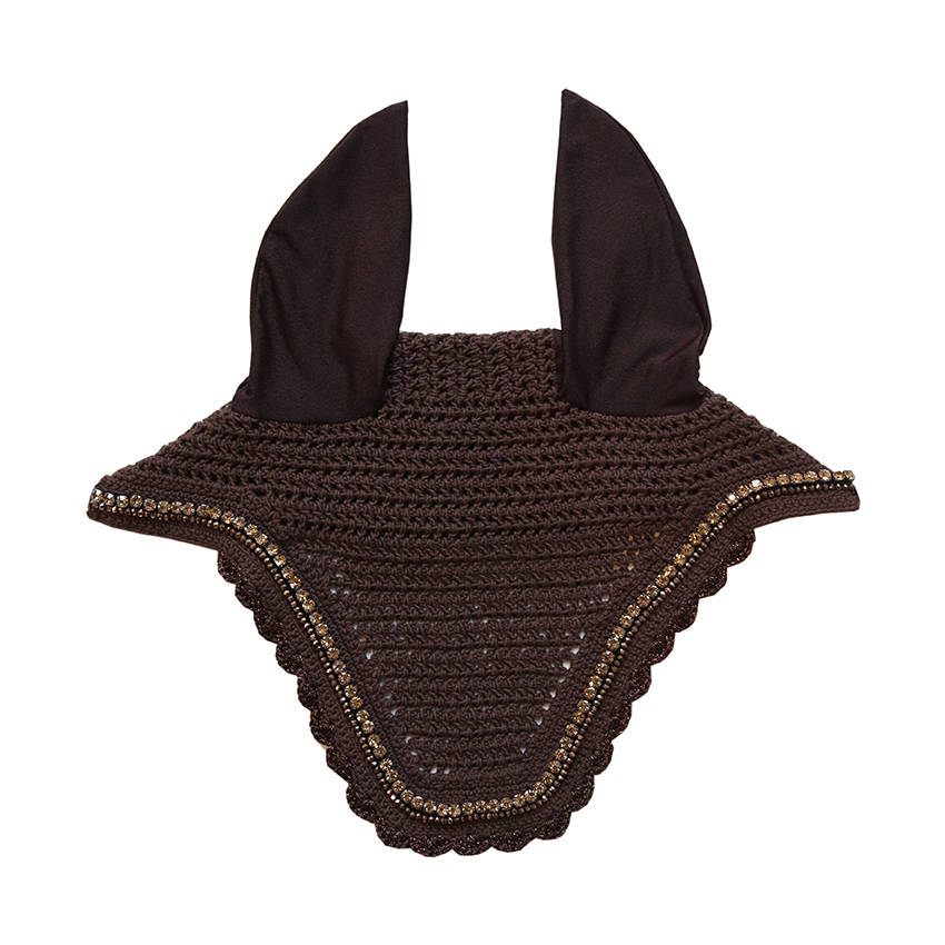 Heerlijke, soundless hut gebreid met een glinsterend effectdraad en een enkele rij met rhinestones en parels.