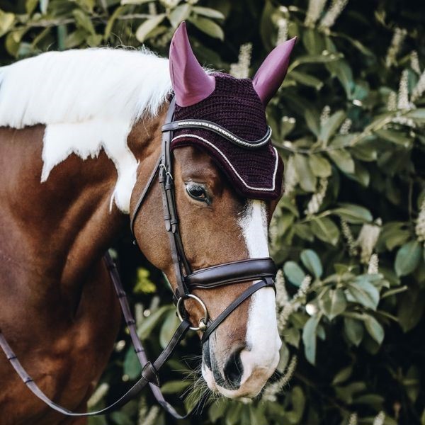 De hut heeft oren die geluiddicht zijn, de hut is gehaakt en heeft een rand in prachtig fluweel en een gedraaide bies in goud.