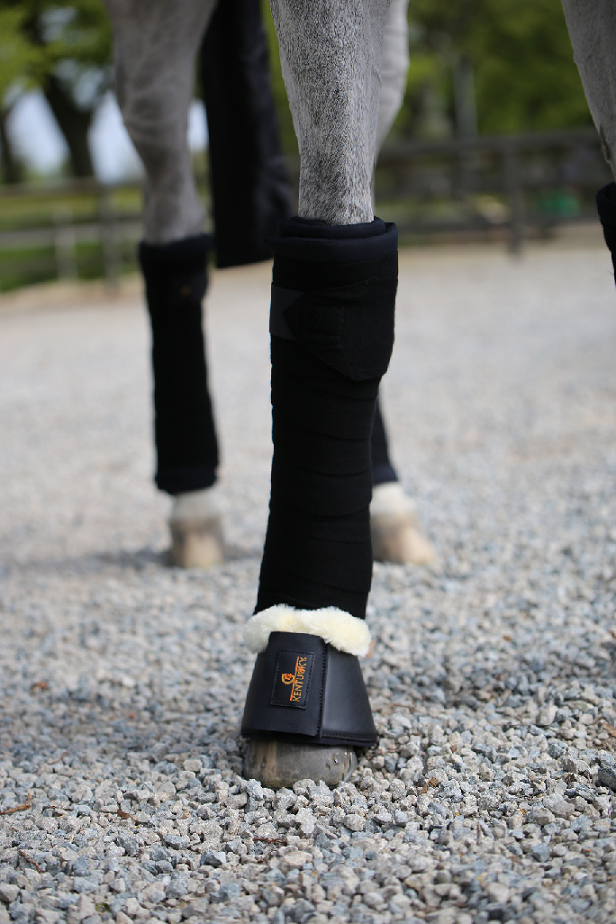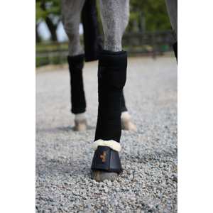 Super fijne wollen bandages in een set van 4 (maat 400 x 12 cm) in breiwerk met stevige klittenband in een mix van wol/acryl.