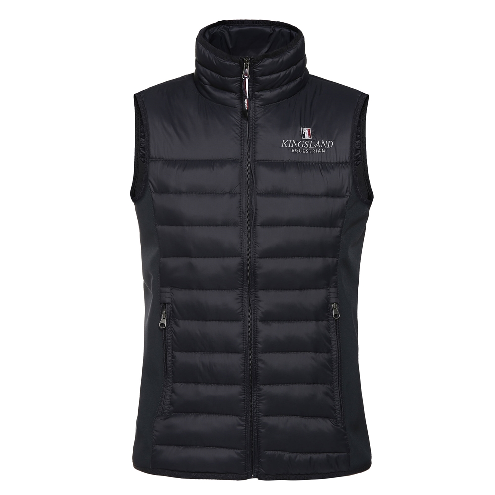 Mooie klassieke bodywarmer van Kingsland. Geïsoleerd in dunne nylon stof met opstaande kraag. Elastische softshell op het lichaam, wat optimale bewegingsvrijheid en comfort garandeert. Gemaakt van een technisch materiaal, dat goede ademende eigenschappen heeft en waterafstotend is. YKK 2-weg rits, evenals twee ritszakken aan de voorkant. Kingsland borduursel op de borst en rug.