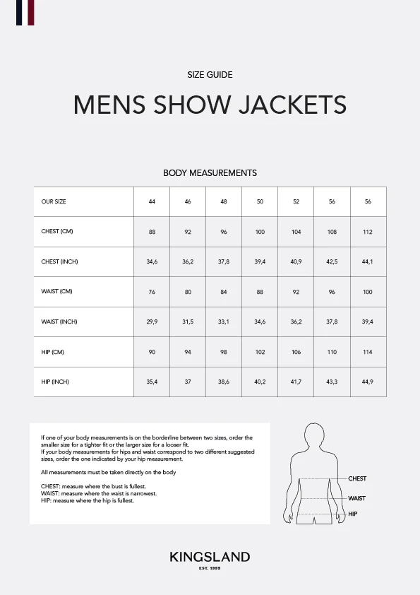 Kingsland borduursel op de rechterzak, knopen met Kingsland logo.