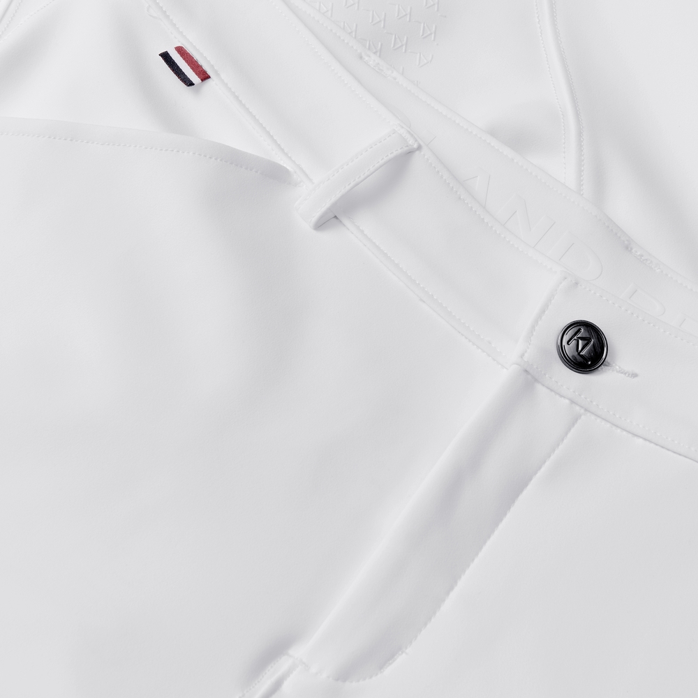 De rijbroek is ademend met een hoge dichtheidsstructuur, wat comfort en duurzaamheid garandeert.
