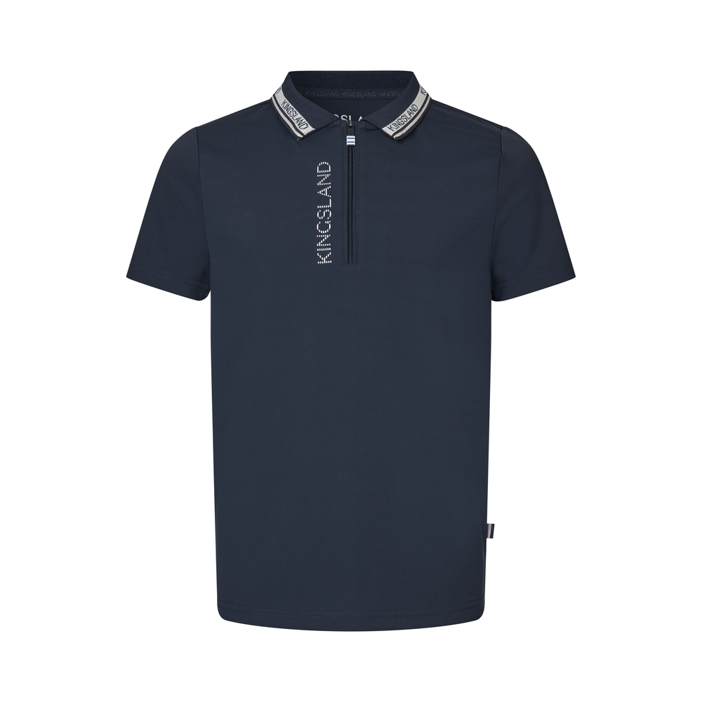 Een subtiel Kingsland-logo omringt de kraag van het shirt, mooie logodetail op de voorste halve rits.