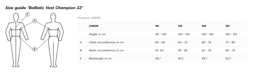Het rugstuk mag tijdens het rijden niet de zadel raken. Het veiligheidsvest is ontworpen om strak tegen het lichaam te zitten, dat wil zeggen over lichte kleding. Bij correcte aanpassing moet het vest de volledige omtrek van het bovenlichaam bedekken. De voorkant moet minstens 25 mm onder de onderste rib reiken, zonder een voorovergebogen rijpositie te belemmeren.