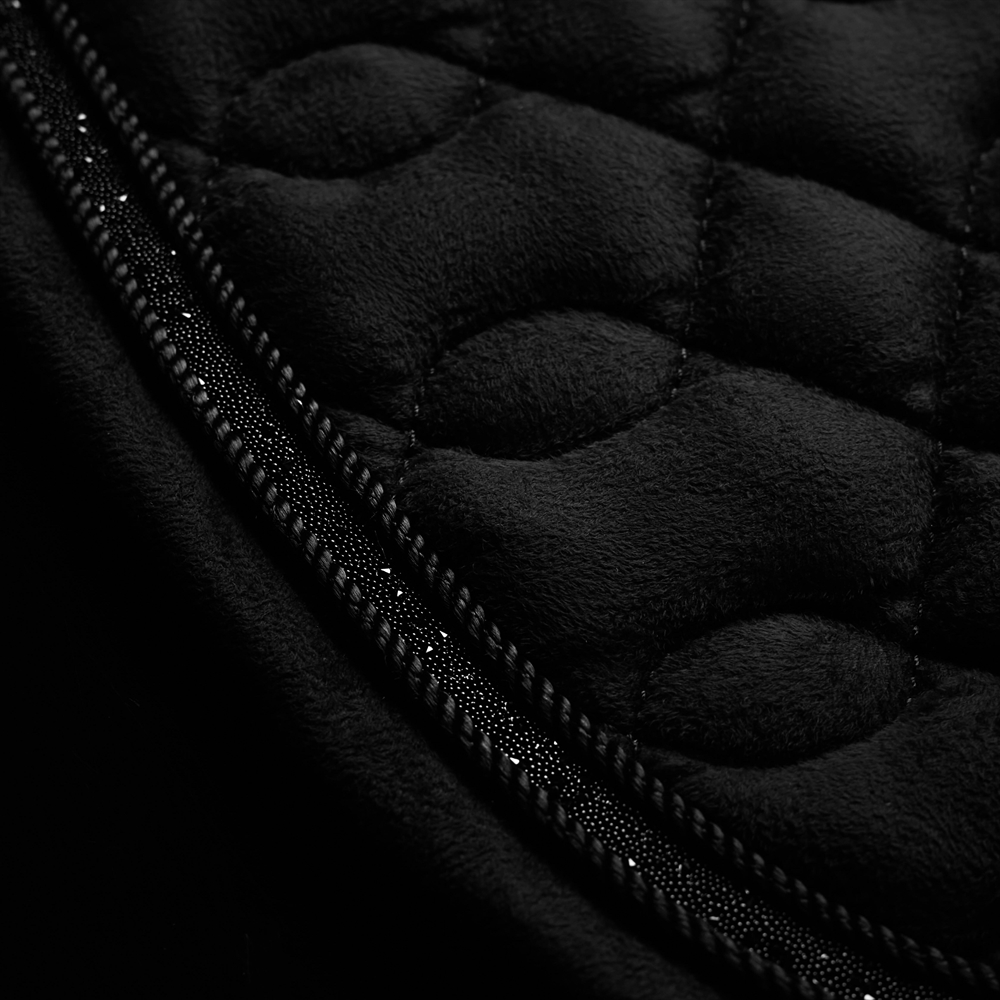 Met een luxueuze zachte suede bovenzijde en een nieuw verfijnd doorgestikt patroon geeft de onderlegger een stijlvol en professioneel uiterlijk aan je zadel.