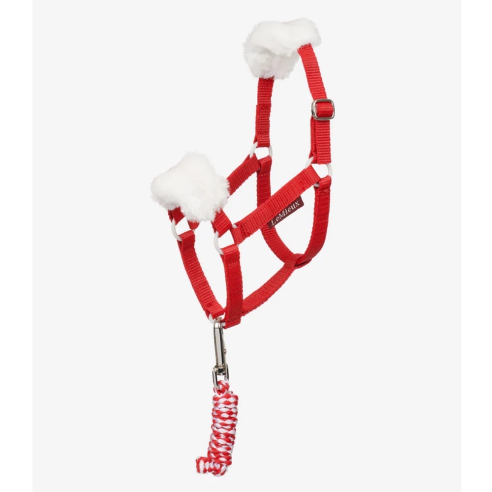 Inclusief een fleece gevoerde neusriem en kopstuk met LeMieux geborduurde branding, net als het echte werk! Het heeft zelfs een verstelbare riem en bijpassend touw.