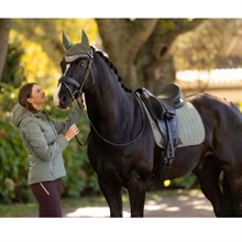 Het prachtige suède-materiaal is perfect voor dagelijks gebruik, terwijl de gevormde rand voorkomt dat het zadeldoek zijn vorm verliest. De natuurlijke bamboemixvoering absorbeert en reguleert zweet onder het zadel, wat zorgt voor een comfortabele en veilige pasvorm en wrijving minimaliseert, zelfs voor paarden met een gevoelige huid.