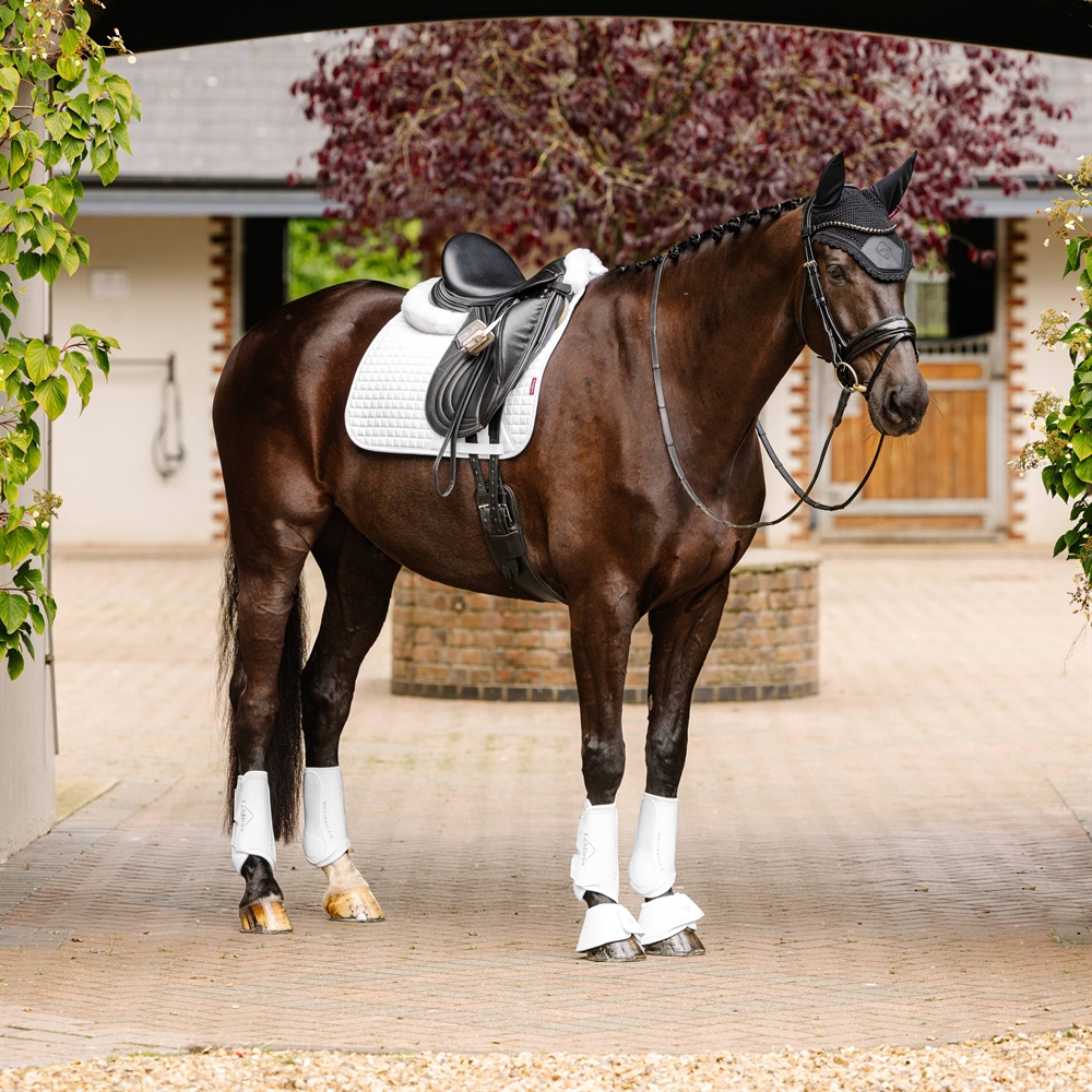 Zadelonderlegger met superzachte suède bies en met PU-leer als bescherming bij het singelgebied, zet deze prachtige zadelonderlegger nieuwe standaarden op het gebied van stijl en comfort. Gevestigd als de iconische LeMieux-look, wanneer het wordt gecombineerd met bijpassende polobandages en vliegenkap.