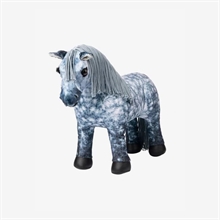 De pony is 55,50 cm lang van neus tot staart en 35 cm van de onderkant van de hoef tot de bovenkant van het hoofd.