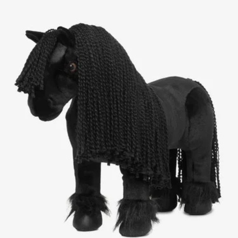 Maak kennis met Spike, de fantastische zwarte Friese speelgoedpony, perfect voor kleine ruiters die spelenderwijs over paarden willen leren. Spike is een grote, trotse ruin met een lange, invlechtbare manen en staart en elegante zwarte sokken, die realisme en charme toevoegen aan elk stalspel.