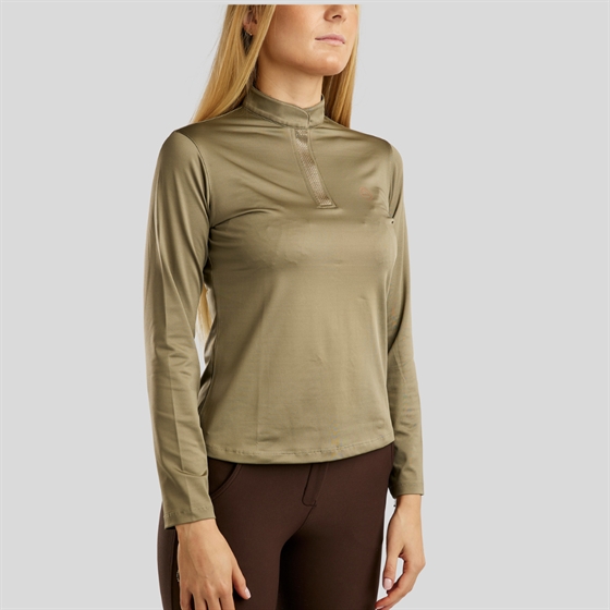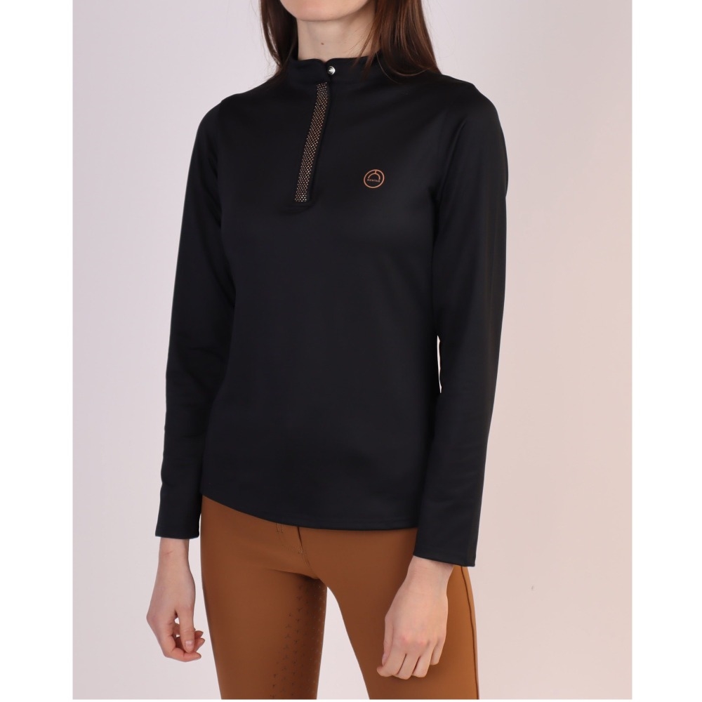 Montar Briella Rosegold is een mooie en vrouwelijke blouse met lange mouwen. De blouse heeft een knoop- en ritssluiting bij de hals die is versierd met kleine glinsterende kristallen. Bovendien is de blouse gemaakt van een elastisch materiaal dat gemakkelijk de bewegingen van het lichaam volgt. Materiaal: 92% polyester, 8% lycra