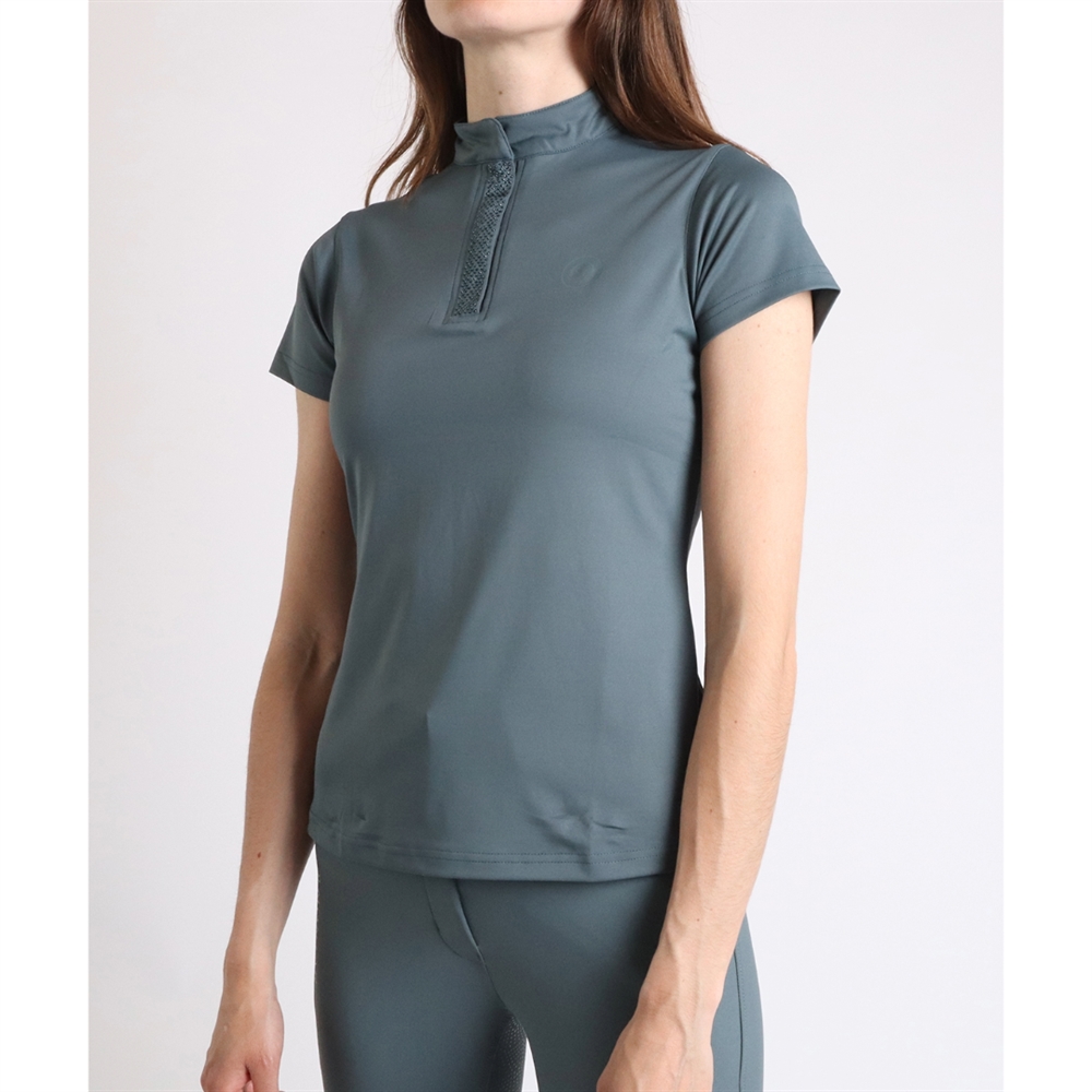 Montar Polo T-shirt met kristallen combineert vrouwelijke elegantie met hoog comfort en functionaliteit. De mooie polo heeft zowel een knoop- als ritssluiting bij de hals, prachtig versierd met kleine fonkelende kristallen, die een exclusieve en stijlvolle uitstraling geven – perfect voor zowel paardrijden als dagelijks gebruik.