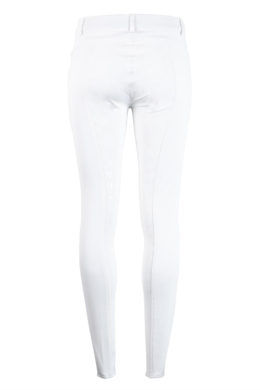 Kinder rijbroek van Montar, met verstelbare tailleband, normale taille en fullgrip. De rijbroek heeft twee voorzakken met decoratieve stenen.
