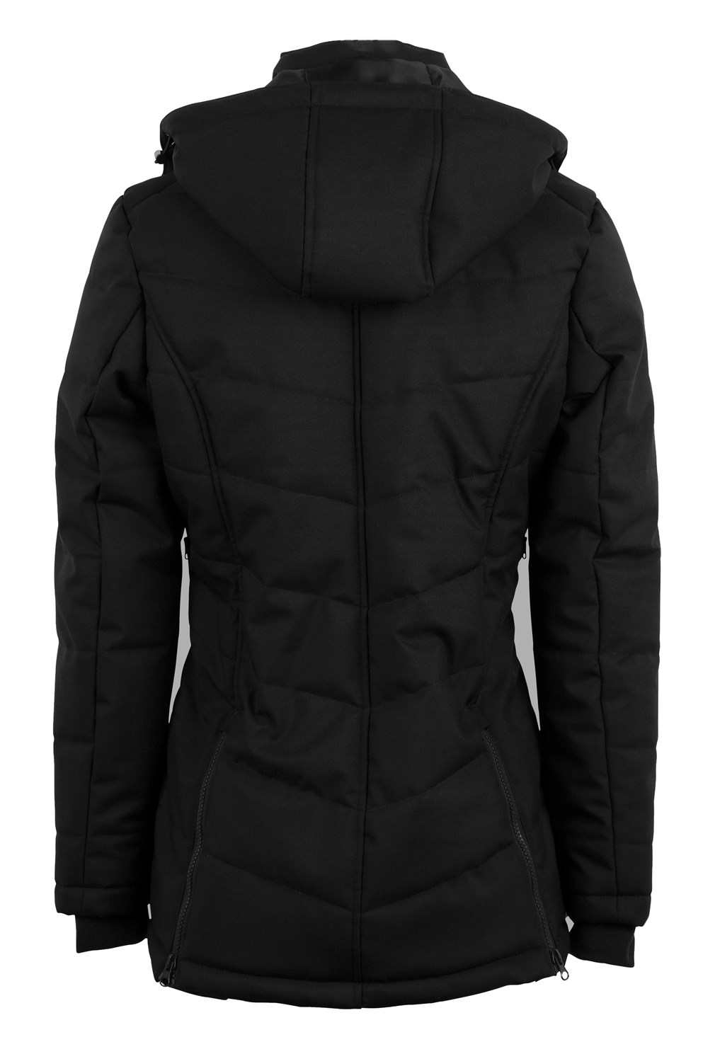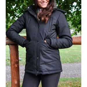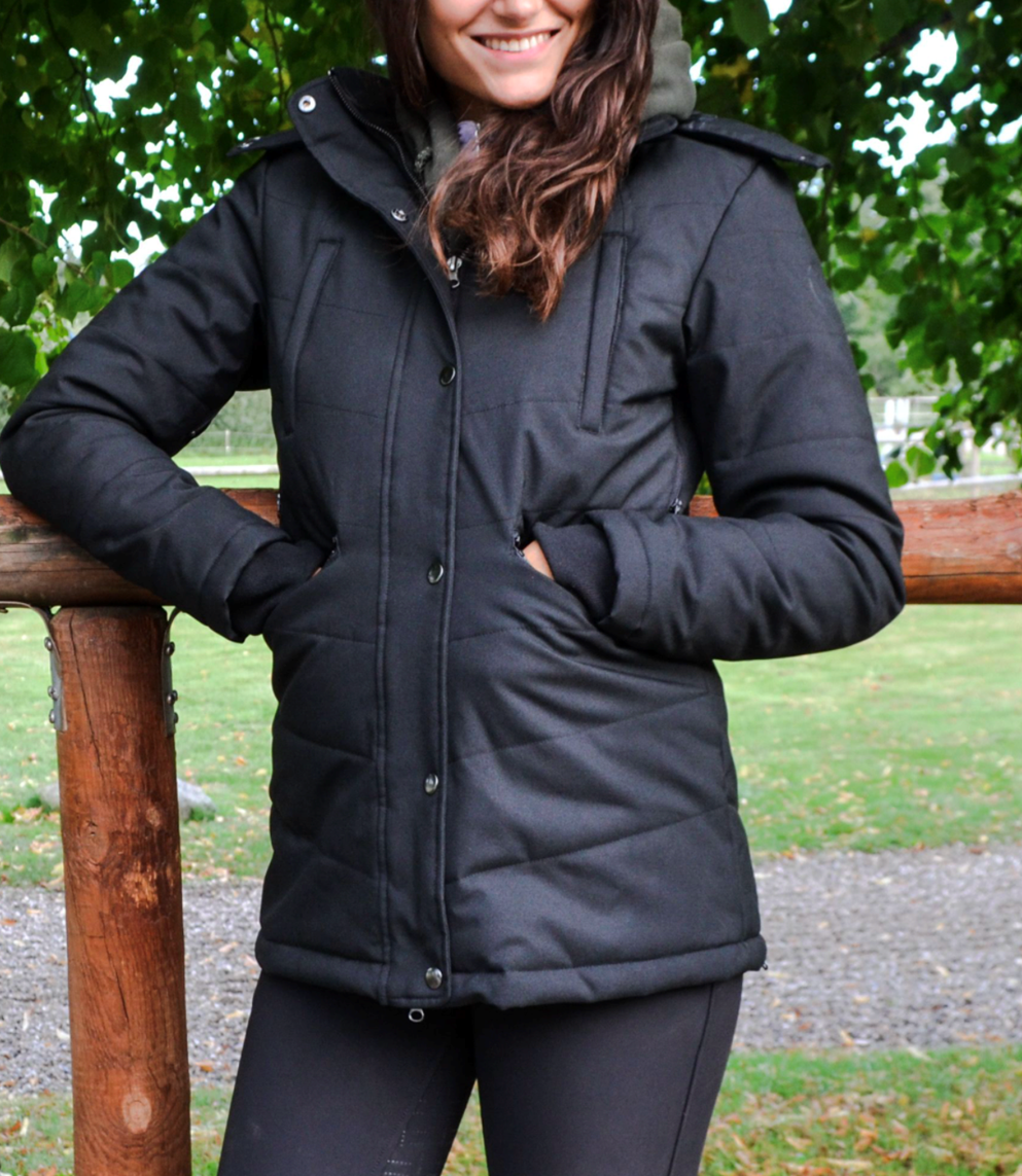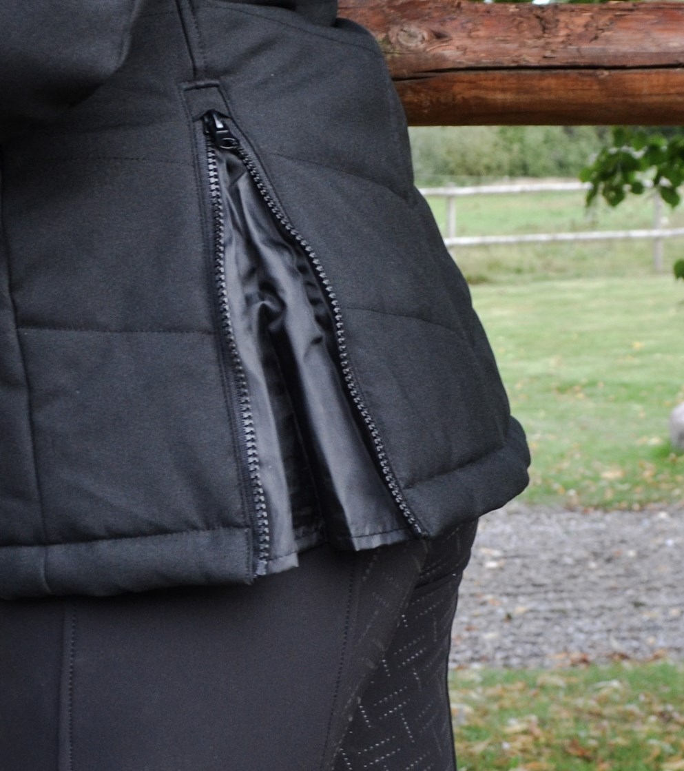 De combinatie van Sustans? vulling met DuPont? Sorona® biedt een unieke luchtige en zachte vulling die de warmte vasthoudt en dezelfde structuur heeft als natuurlijke dons. De jas is perfect voor zowel werk in de stal als voor een lange rit, omdat hij twee praktische splitten aan de achterkant heeft die omhoog en omlaag geritst kunnen worden. Bovendien heeft de jas vier zakken aan de voorkant, allemaal met ritssluiting.