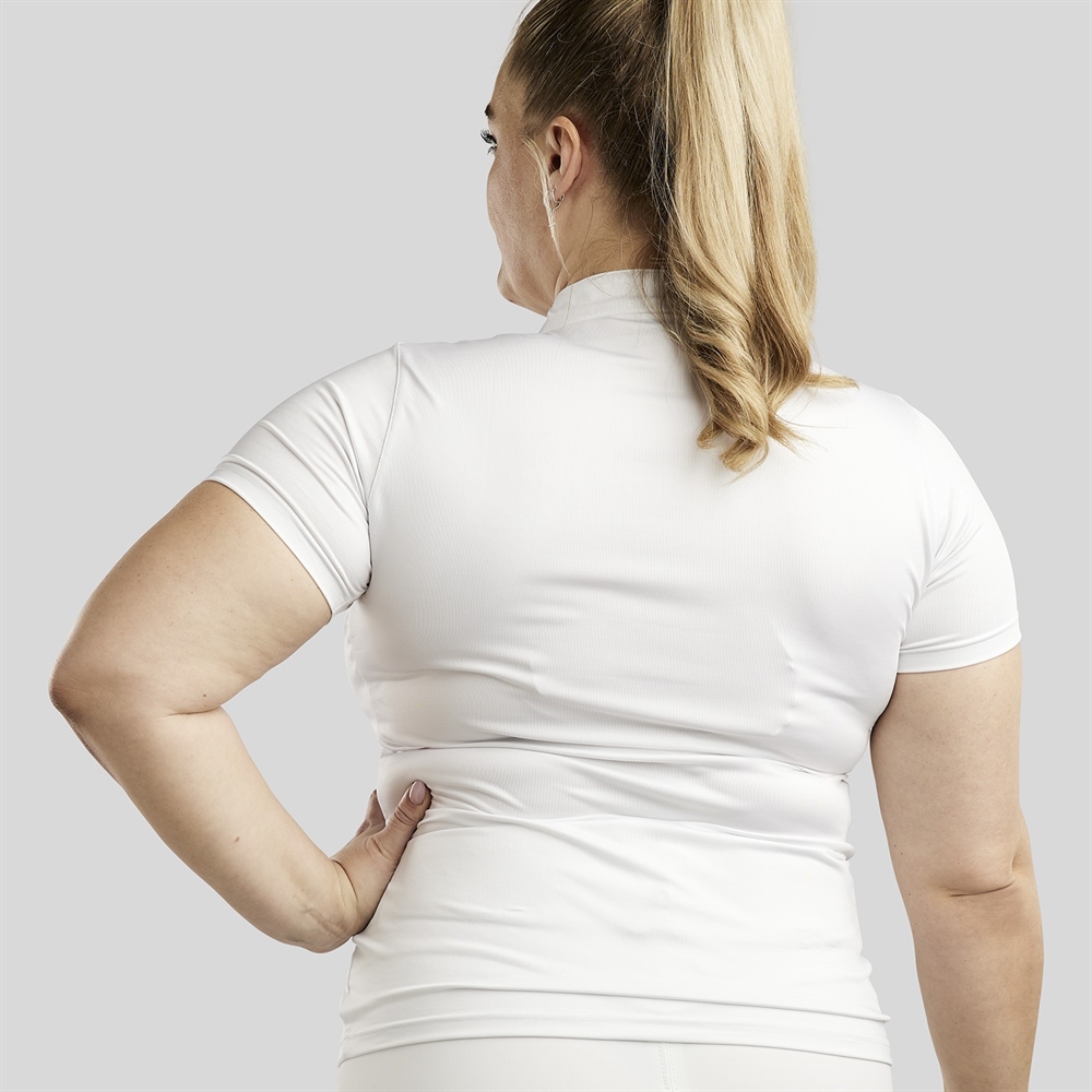 Ben je op zoek naar het perfecte shirt voor wedstrijden, dan is Everly precies de juiste voor jou. Het prachtige shirt heeft een mooi logo met stenen op de linkerborst en een discrete rits in de hals.