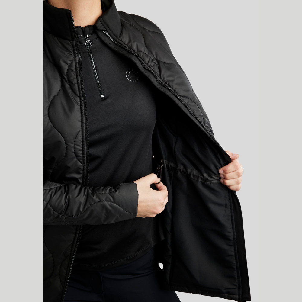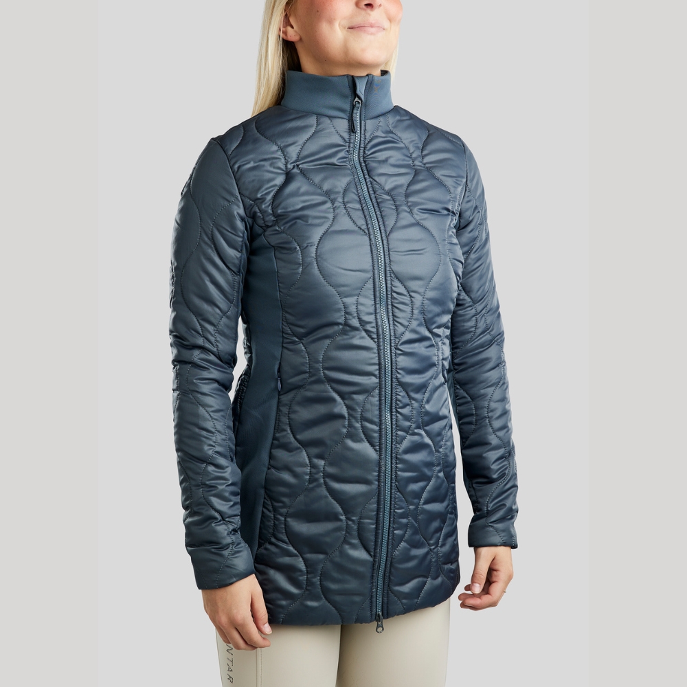 Het materiaal biedt een goede isolatie, terwijl het gemakkelijk te onderhouden is, waardoor de jas perfect is voor dagelijks gebruik in de stal of tijdens het rijden.