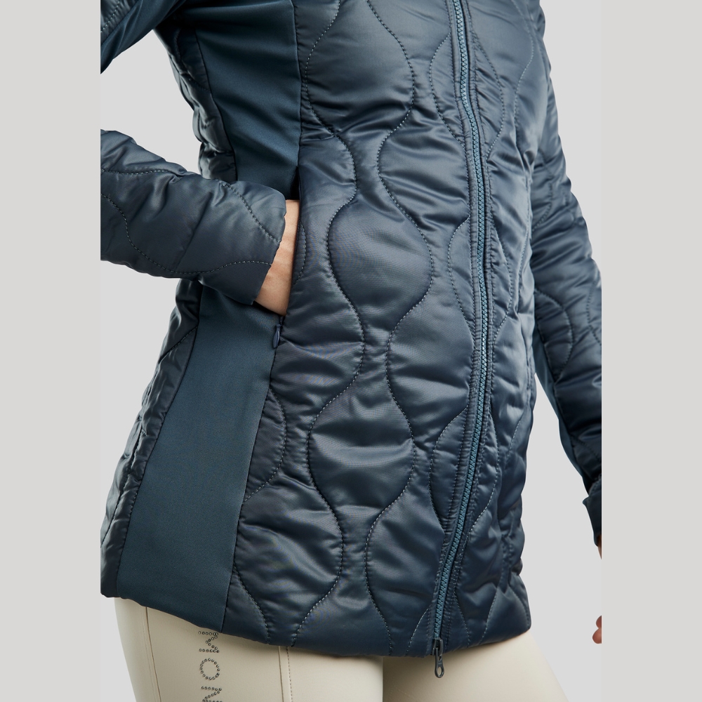 De jas heeft een mooi gewatteerd design, de Softshell-details aan de zijkanten en onderarmen voegen een sportief en functioneel contrast toe, terwijl ze optimale bewegingsvrijheid en comfort garanderen.