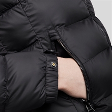 Was de jas volgens de wasinstructies op het label. Gebruik een fijnwasprogramma met koud water en een mild wasmiddel. Vermijd bleekmiddel of wasverzachter, omdat dit de stof en vulling kan beschadigen.