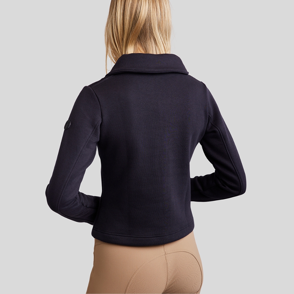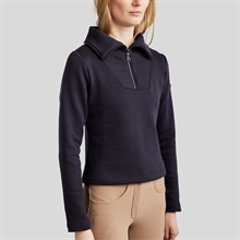 De sweatshirt heeft een praktische ritssluiting in glanzend metaal met een logo hanger.