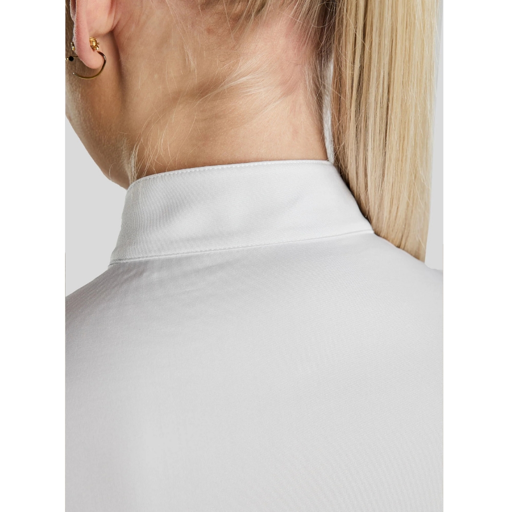Stijl en Prestaties in Eén: De MoGaia wedstrijdblouse is de perfecte keuze voor ruiters die luxe design willen combineren met hoge prestaties.