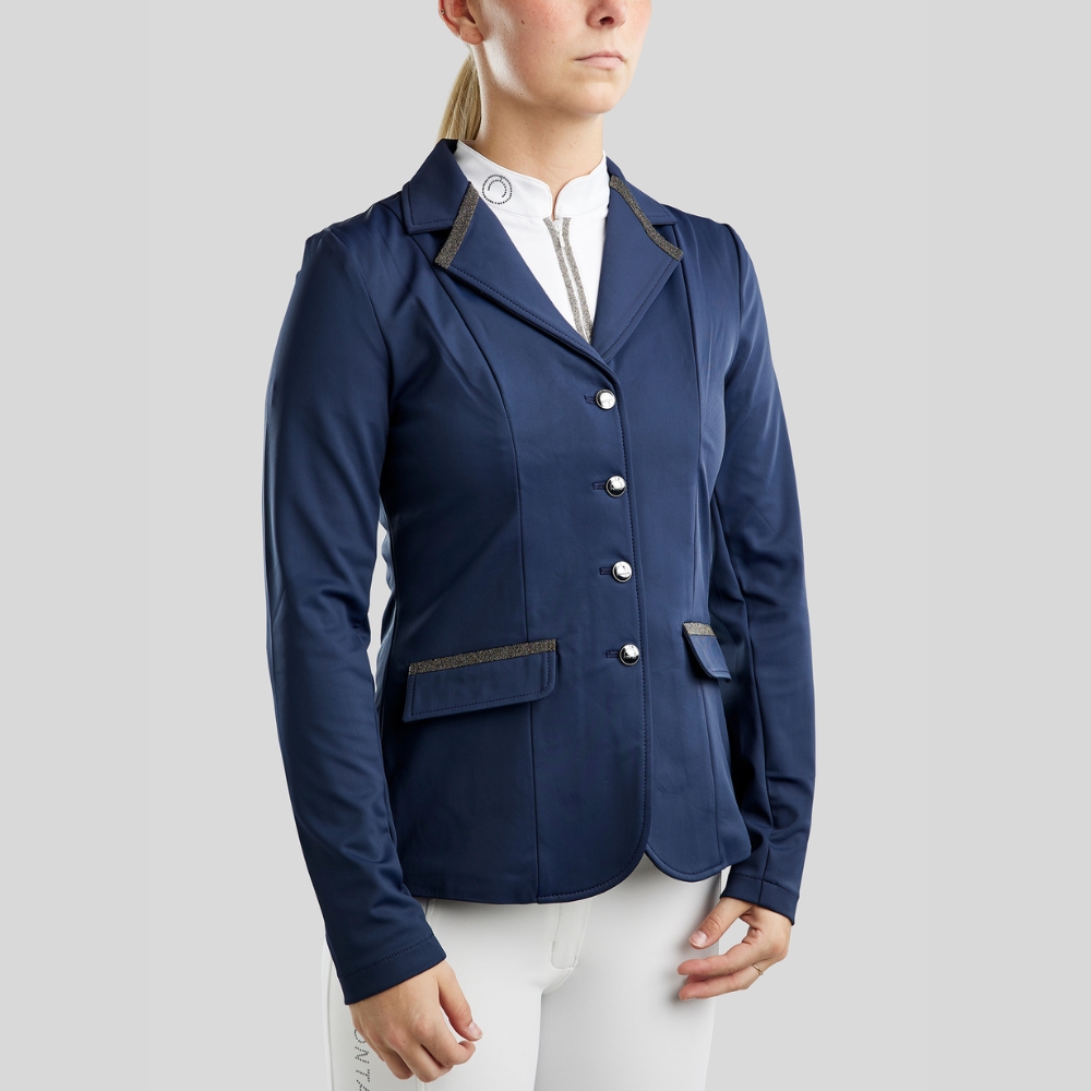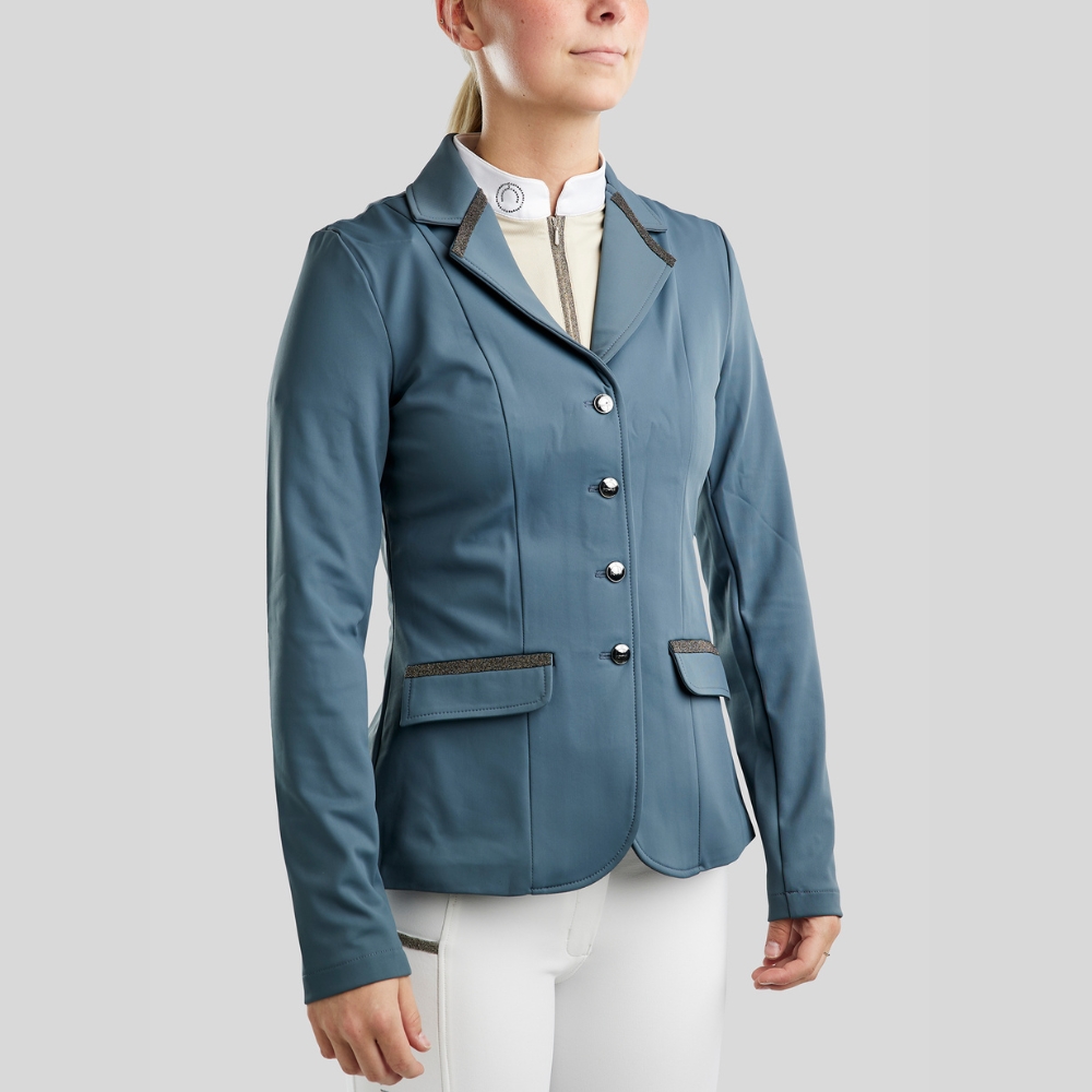 MoGloria Caviar Tape wedstrijdjas is een verfijnde en stijlvolle wedstrijdjas die luxueuze details combineert met praktische functionaliteit. Perfect voor ruiters die elegantie en prestaties waarderen en indruk willen maken in de wedstrijdring.