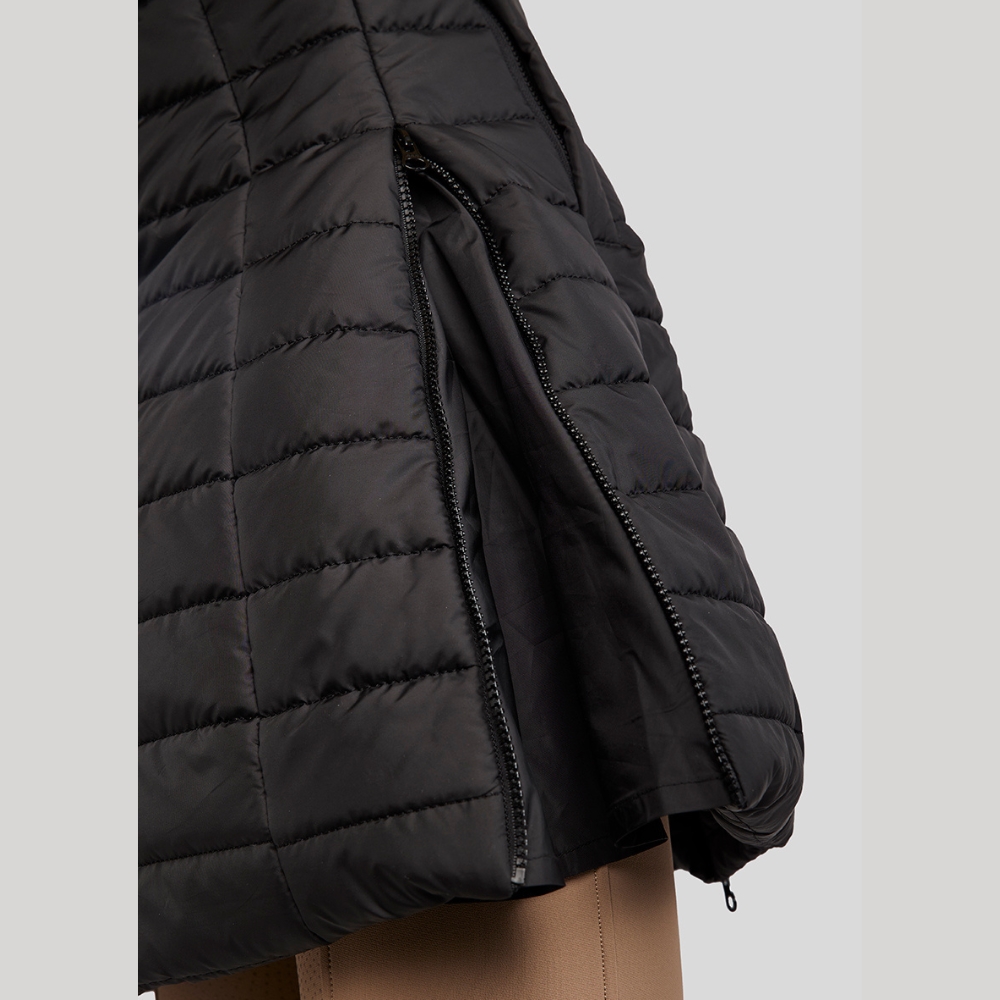 De lange lengte biedt extra bescherming en warmte, en de praktische 2-weg rits maakt de jas ideaal voor paardrijden, omdat je hem van onderen kunt openen voor betere bewegingsvrijheid in het zadel. Met zowel ritszakken als een binnenzak is het gemakkelijk om telefoon, sleutels en andere benodigdheden bij te houden.