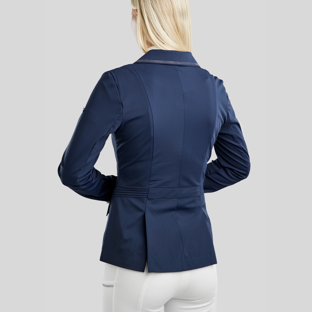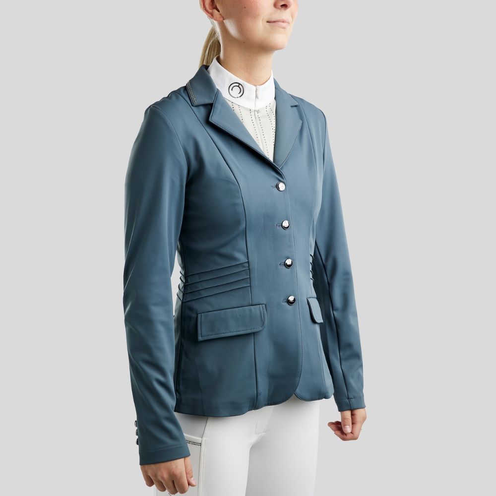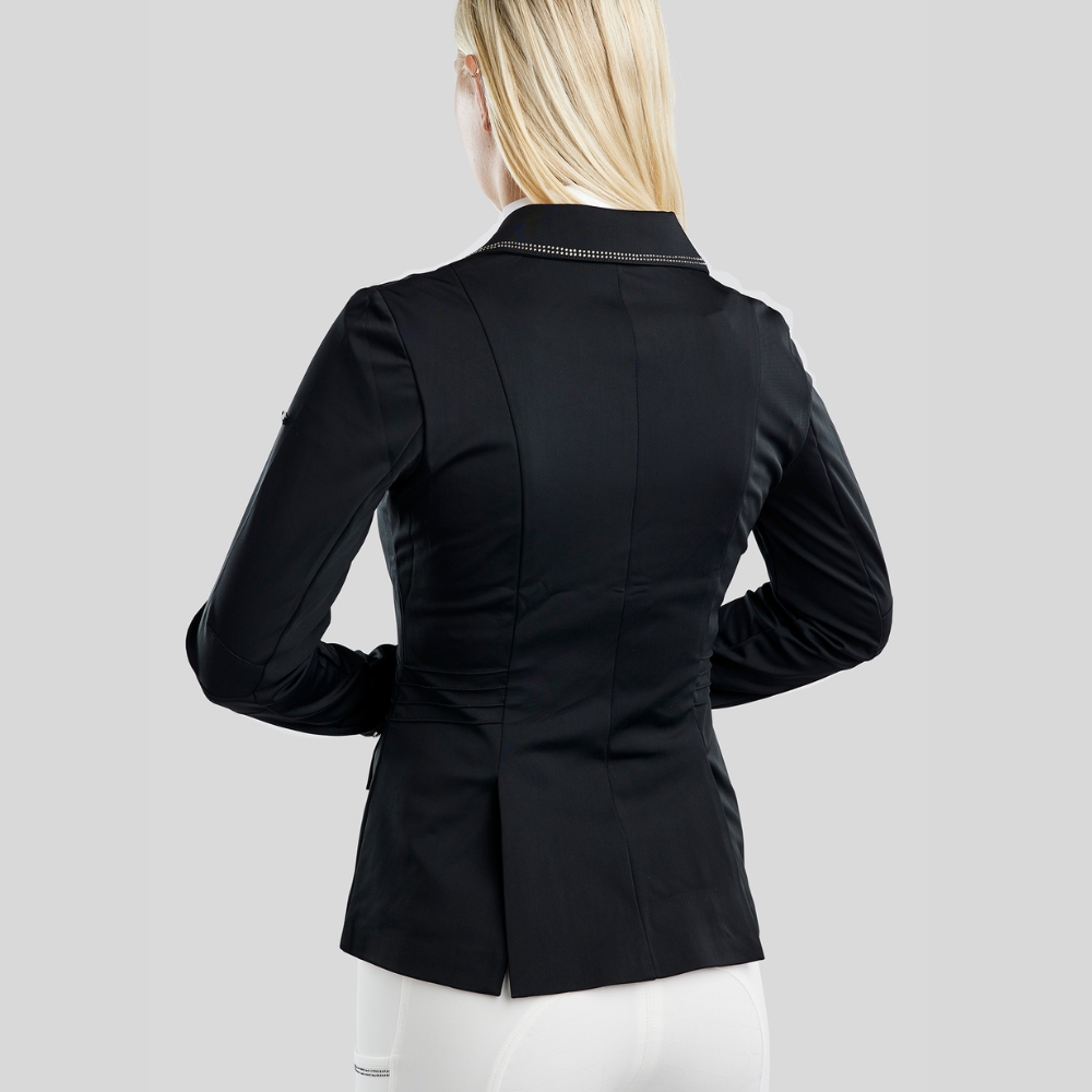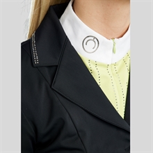 Montar MoKatniss Gun Metal Crystal wedstrijdjas is de ultieme wedstrijdjas die functionaliteit, elegantie en luxueuze details combineert. Met zijn stijlvolle gun metal kristallen en pintucks bij de zakken, biedt deze jas zowel een moderne als klassieke uitstraling, perfect voor de stijlbewuste ruiter.
