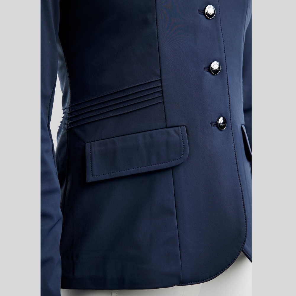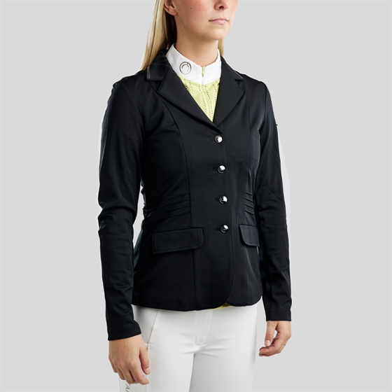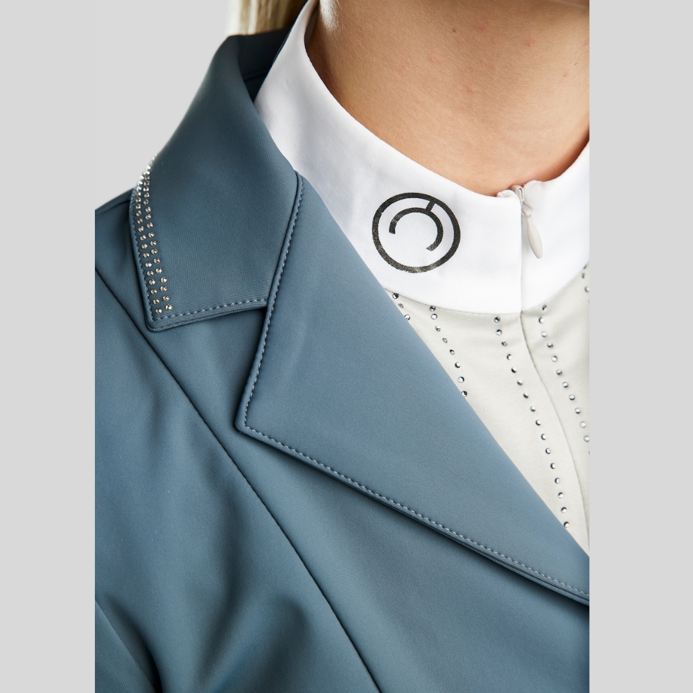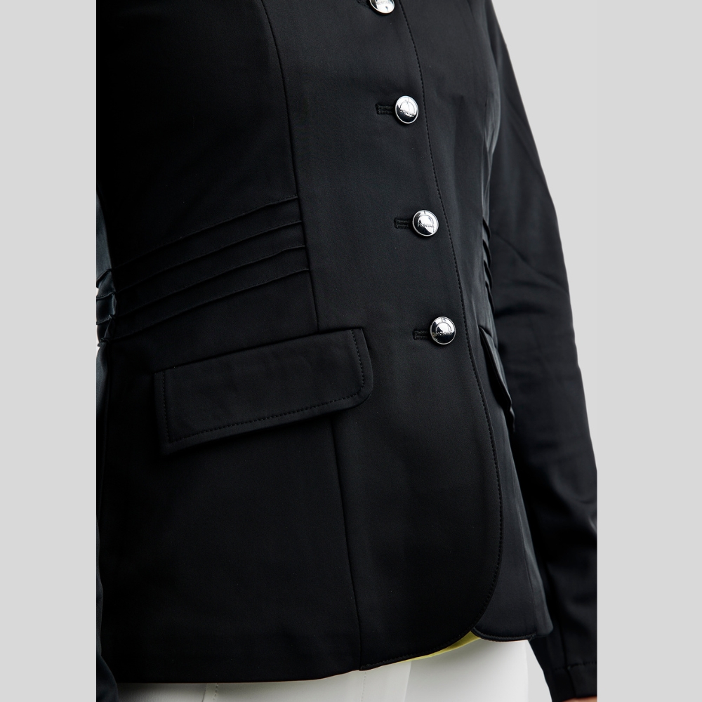 Montar MoKatniss Gun Metal Crystal wedstrijdjas is de ultieme wedstrijdjas die functionaliteit, elegantie en luxueuze details combineert. Met zijn stijlvolle gun metal kristallen en pintucks bij de zakken, biedt deze jas zowel een moderne als klassieke uitstraling, perfect voor de stijlbewuste ruiter.