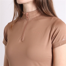 Montar MoKelsey Polo is een stijlvolle t-shirt die vrouwelijk design combineert met functioneel comfort. Het is versierd met prachtige rosegold-kristallen, die een subtiele glamour-touch toevoegen, en heeft een rosegold rits in de hals en een opstaande kraag, die de look naar een extra niveau van elegantie tilt.