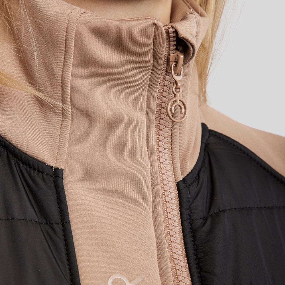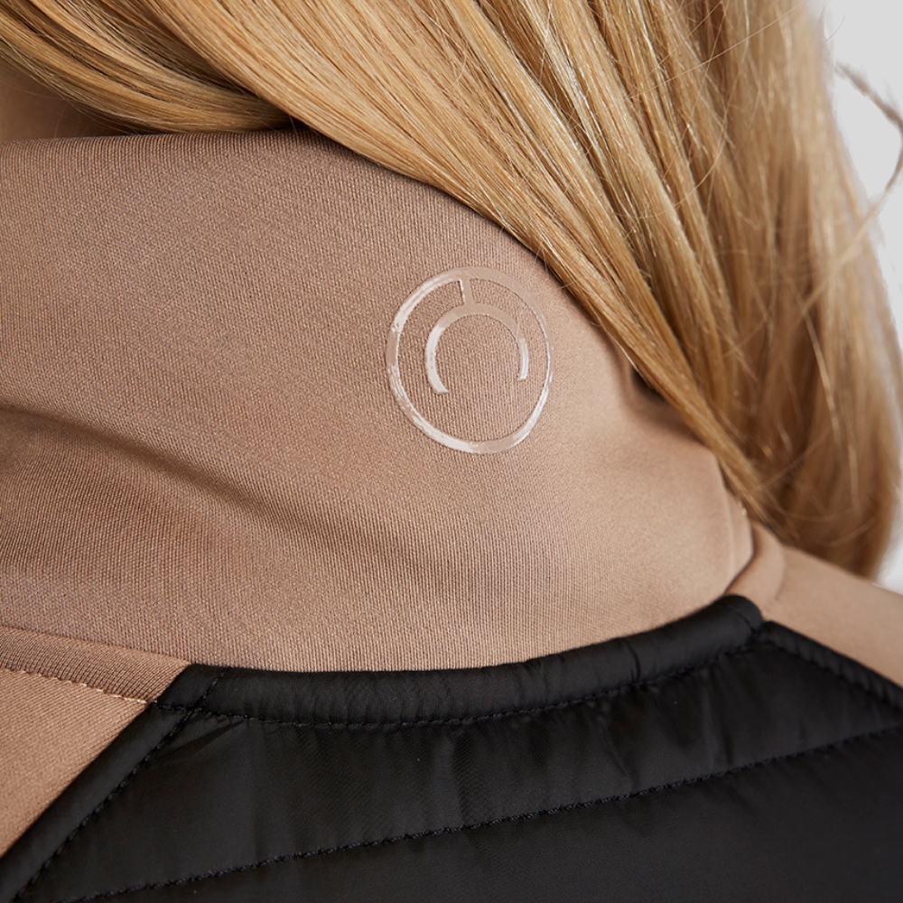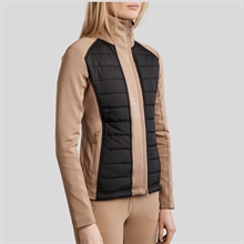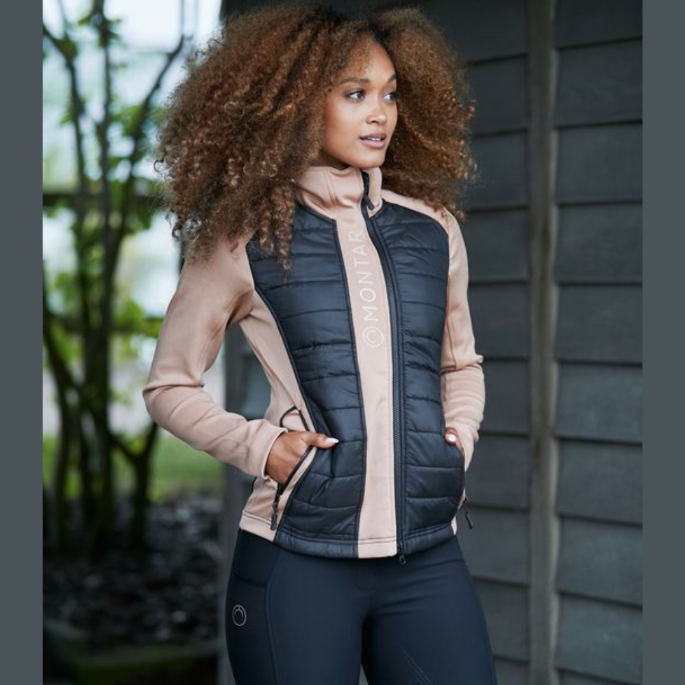 De perfecte jas voor het dagelijkse werk in de stal en de koele zomeravonden. De jas is winddicht, vuil- en waterafstotend en zweettransporterend. De jas heeft een prachtige, gewatteerde stof aan de voor- en achterkant, en mouwen gemaakt van zacht Softshell-stof, wat veel bewegingsvrijheid en een mooie vrouwelijke pasvorm biedt. De jas heeft twee praktische zakken met ritssluiting. De jas sluit met een rits die links van het midden is geplaatst voor een mooie grafische uitstraling. Versierd met een klein discreet logo bij de hals en een groter siliconen Montar-logo aan de voorkant van de jas.