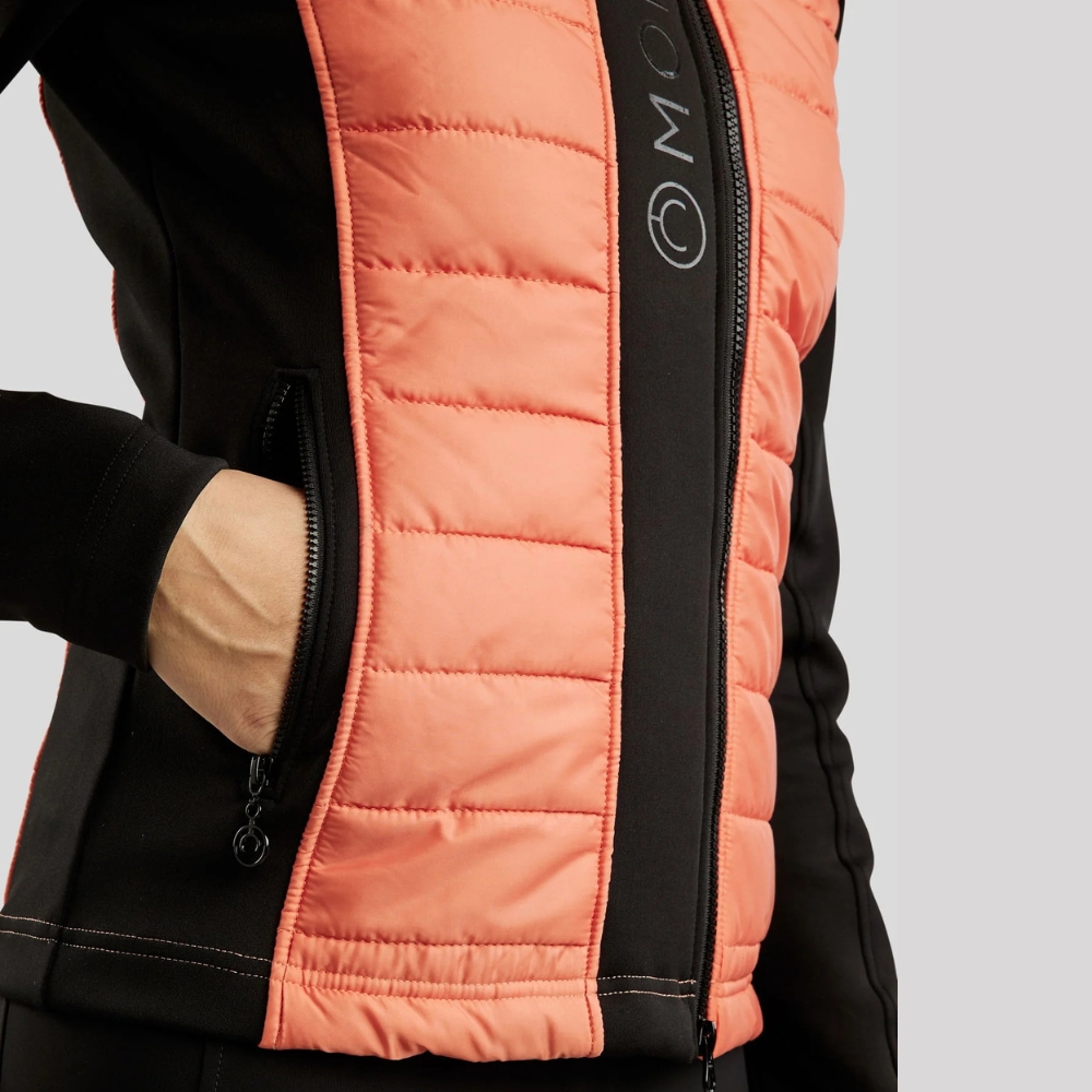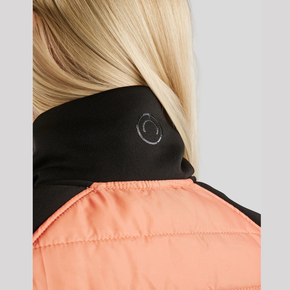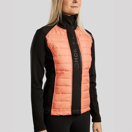 De perfecte jas voor het dagelijkse werk in de stal en de koele zomeravonden. De jas is winddicht, vuil- en waterafstotend en zweettransporterend. De jas heeft een prachtige, gewatteerde stof aan de voor- en achterkant, en mouwen van zacht Softshell-stof, wat grote bewegingsvrijheid en een mooie vrouwelijke pasvorm biedt. De jas heeft twee praktische zakken met rits. De jas sluit met een rits die links van het midden is geplaatst voor een mooi grafisch effect. Versierd met een klein discreet logo bij de hals en een groter siliconen Montar-logo aan de voorkant van de jas.