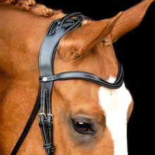 Het klassieke frontriem heeft een zachte voering en is elegant gebogen om de expressie van het paard te benadrukken. Alle Montar frontriemen hebben een drukknoopsluiting en kunnen tijdens gebruik worden verwisseld.