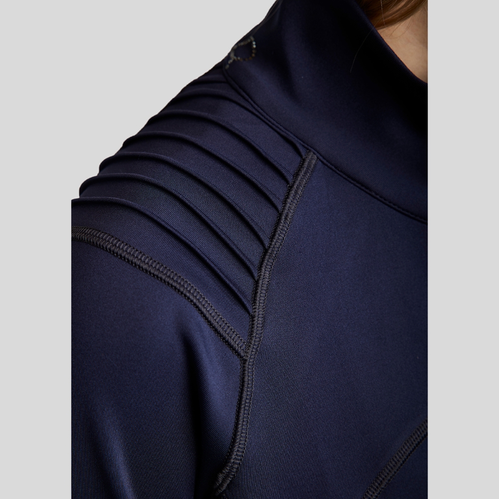 Deze softshell-jas combineert comfort, stijl en prestaties en is ontworpen voor ruiters die zowel functionaliteit als elegantie wensen. Pintuck-details op de schouders creëren een slanke en verfijnde uitstraling, en de fonkelende kristallen op de achterkant van de kraag voegen een vleugje glamour toe.