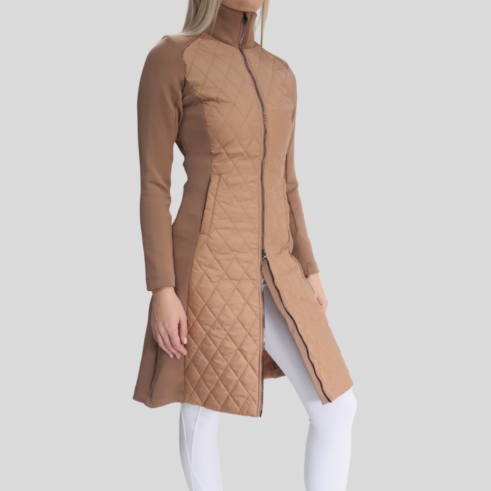 Montar MoQuinn is een praktische lange jas voor zowel stalwerk als paardrijden.