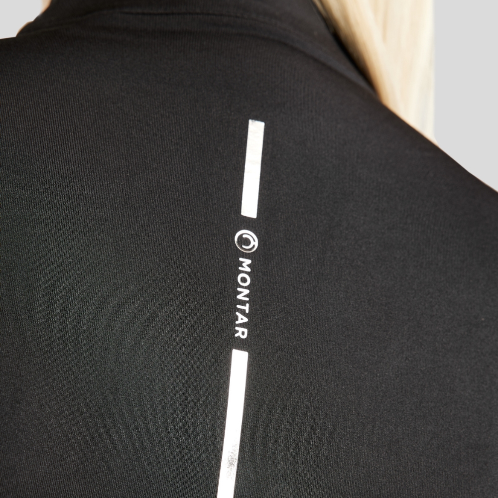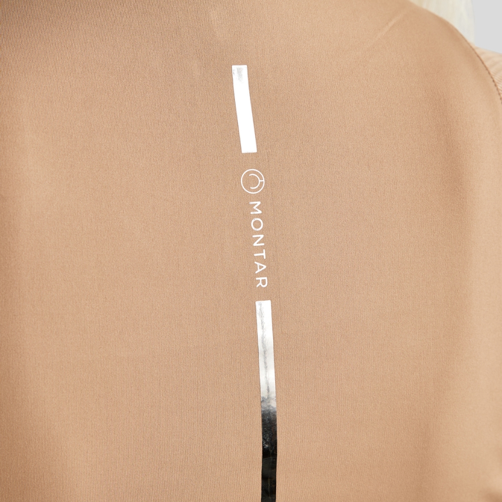 Het trainings t-shirt heeft een mooi folie-gedetailleerd Montar logo dat van de nek een stuk naar beneden op de rug loopt. Daarnaast heeft de blouse een bijpassend zilverkleurig Montar logo op de borst.