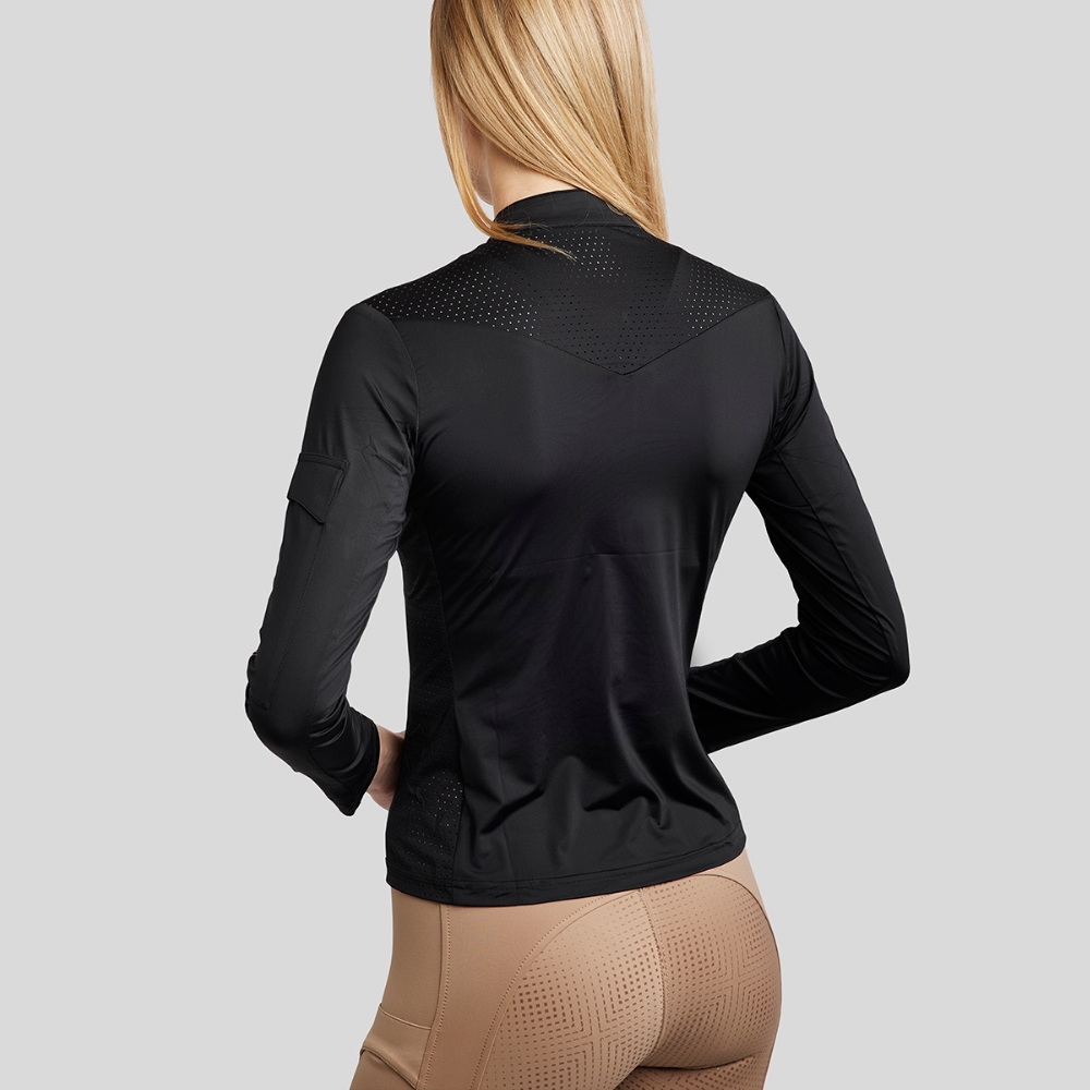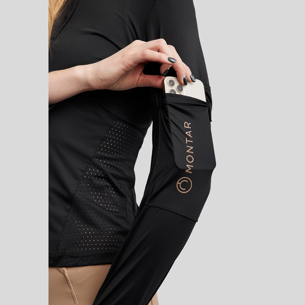 Het ademende lasercut-patroon zorgt voor een mooie pasvorm, en het heeft een praktische telefoonvak op de mouw, waardoor je gemakkelijk je spullen mee kunt nemen.