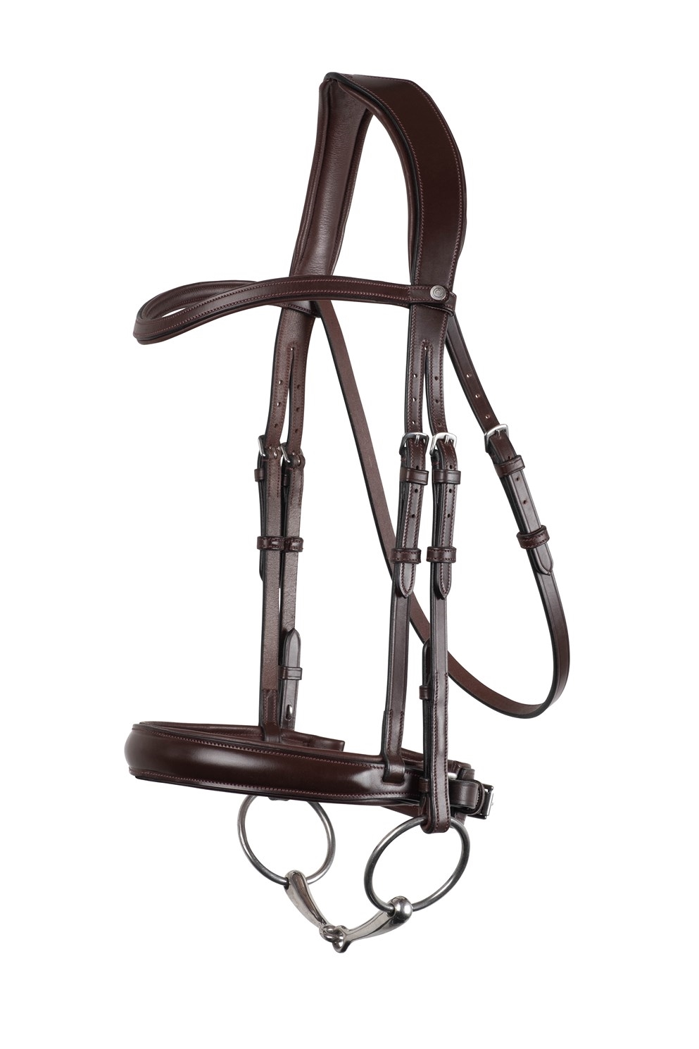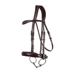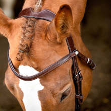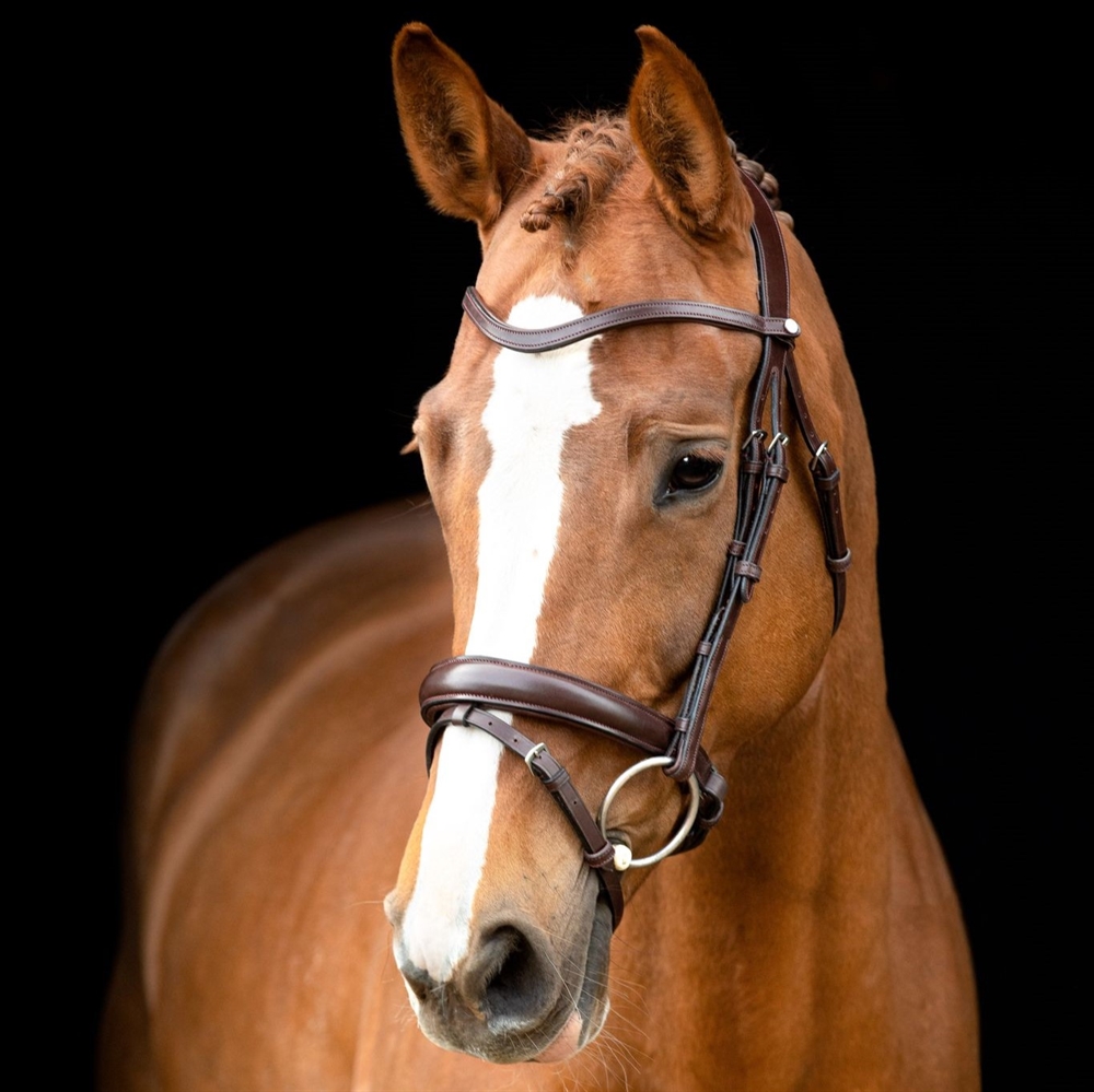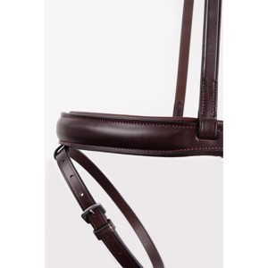 Het klassieke frontriem is zacht gevoerd en elegant gebogen om de expressie van het paard te benadrukken.