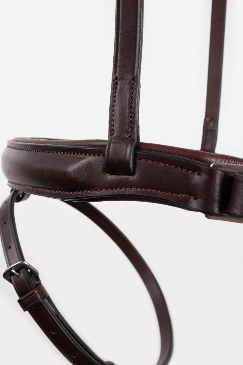 De neusriem is volledig afneembaar, inclusief de gesp, die gemakkelijk kan worden verwijderd door deze tussen de voering en het bovenleer omhoog te duwen. Dit hoofdstel kan dus met of zonder de onderste neusriem worden gebruikt.
