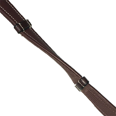 Ongelooflijk fijne en zachte, smalle teugel (16 mm) met leer aan de buitenkant en rubber aan de binnenkant voor optimale grip en roestvrijstalen gespen.